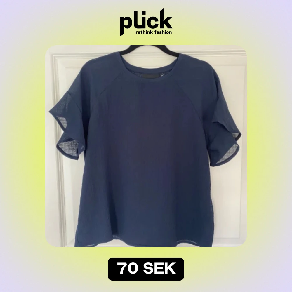 Marinblå t-shirt med volang på ärmarna, i ett tunt material, bra till sommaren.