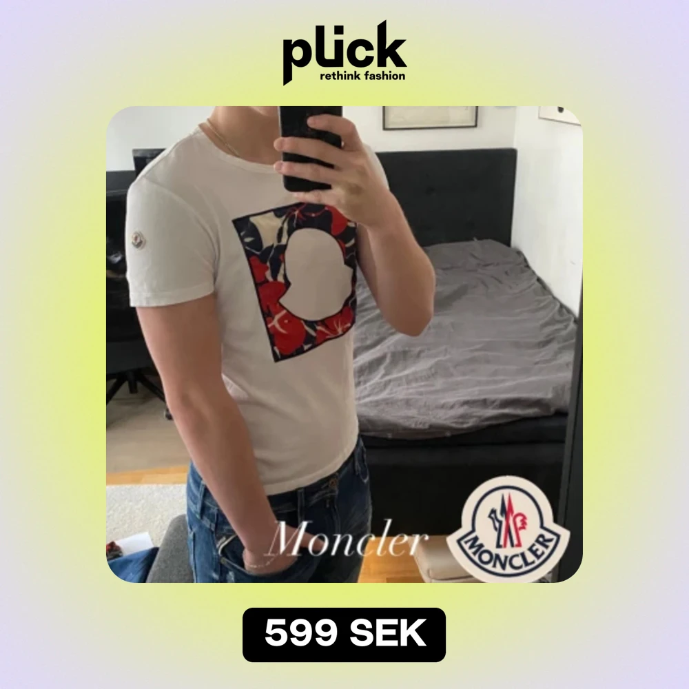 Riktigt snygg och unik moncler t shirt i storlek S men passar även M, den är i nyskick. Perfekt nu till våren och sommaren. Qr koden funkar och den är självklart äkta. Hör va dig vid minsta lilla intresse eller funderingar😁