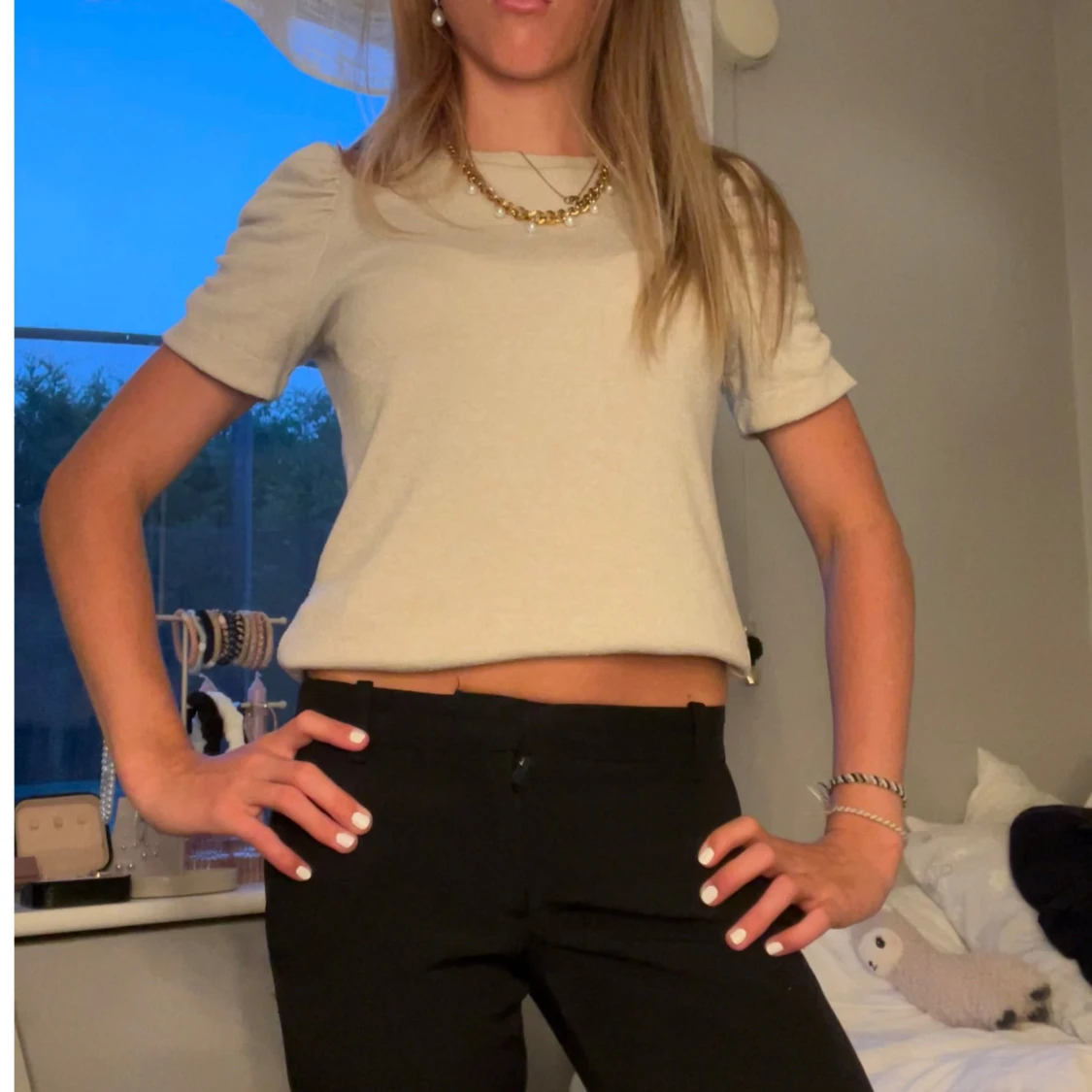 Super fin beige t-shirt med insydda ärmar. Perfekt nu till hösten. Använd ett fåtal gånger och ser ut som ny❤️