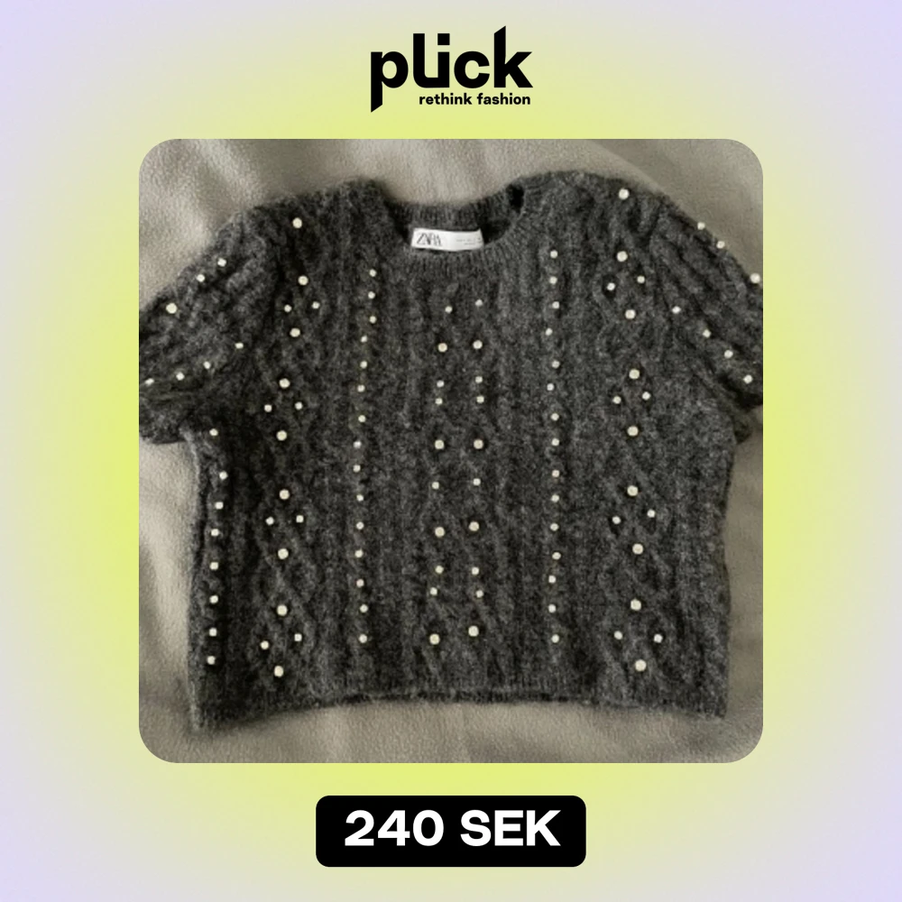 Säljer en oanvänd grå Zara tröja med silver pärlor på som är i storlek S, om ni vill ha fler bilder så skriv privat💗 Ps inga pärlor saknas💕