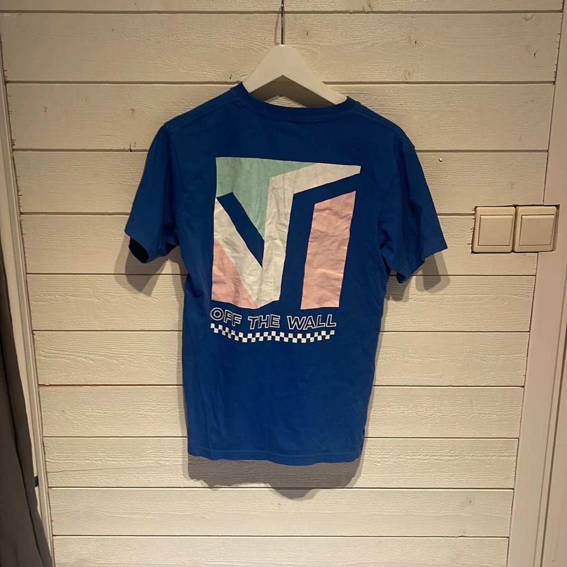 Blå vans tröja med tryck fram och bak men den kommer tyvärr inte till användning