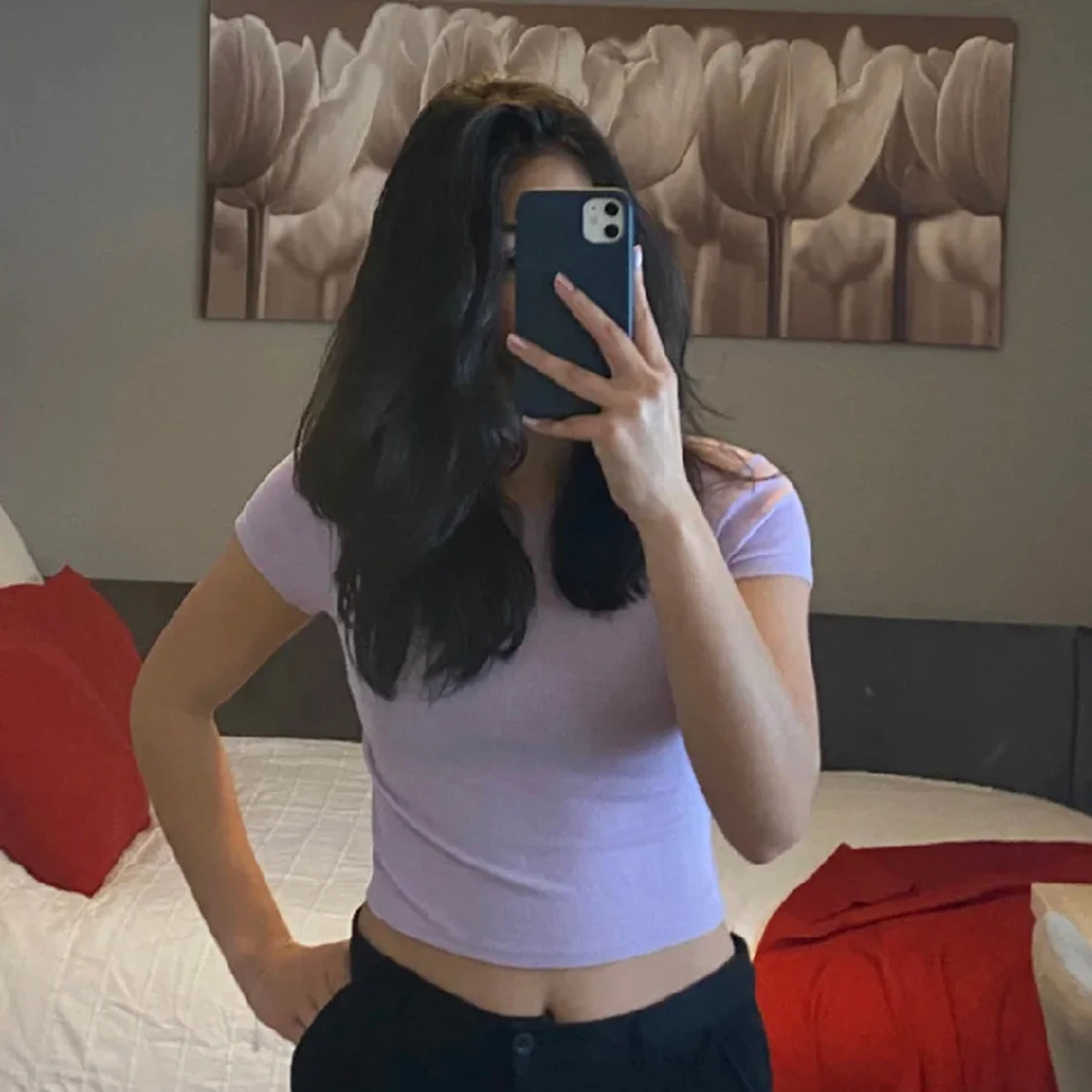 En lila topp i storlek XS. Jättefin färg och sitter superskönt!💞