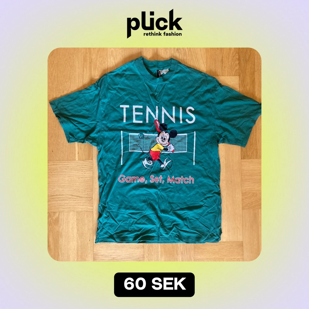 Mörkgrön oversized t-shirt med tryck av Disneys mussepig som spelar tennis. Inköpt från h&m, står stl XXS men passar upp till M. Enbart använd fåtal gånger. Klicka gärna på köp nu och meddela för eventuella frågor. :)