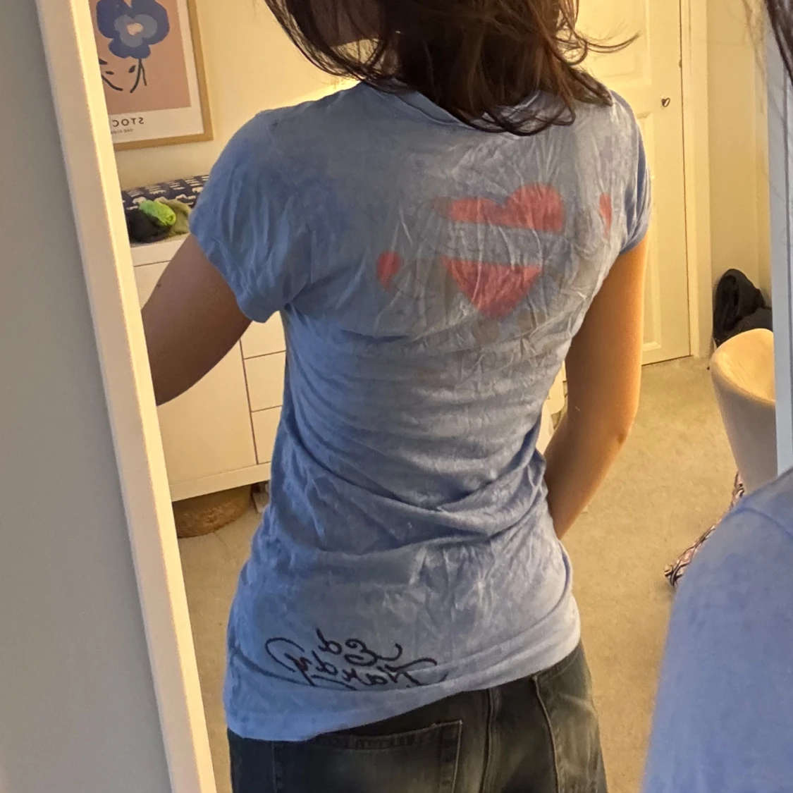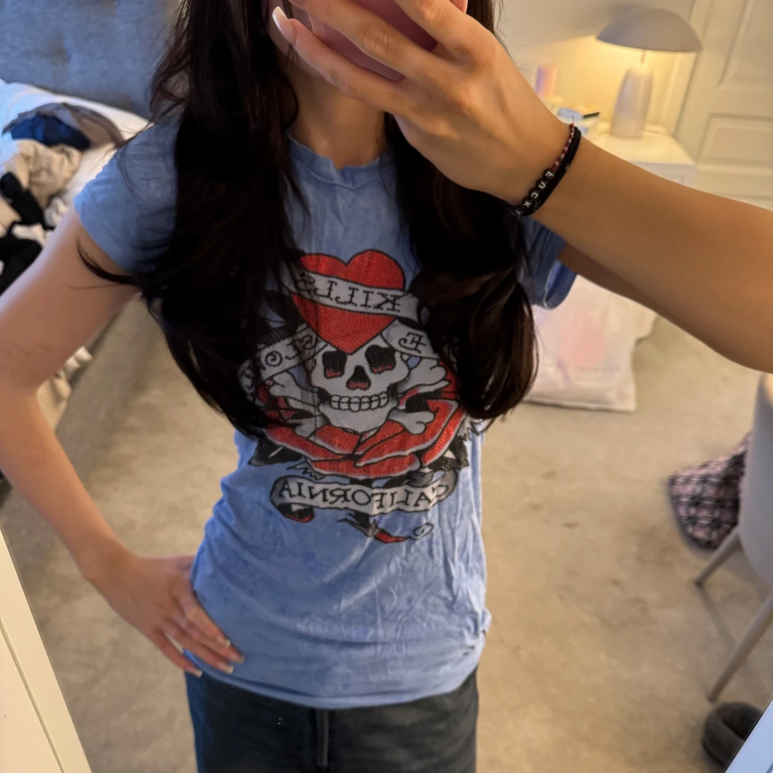 Säljer en blå Ed Hardy t-shirt med ett coolt tryck. Storlek S.