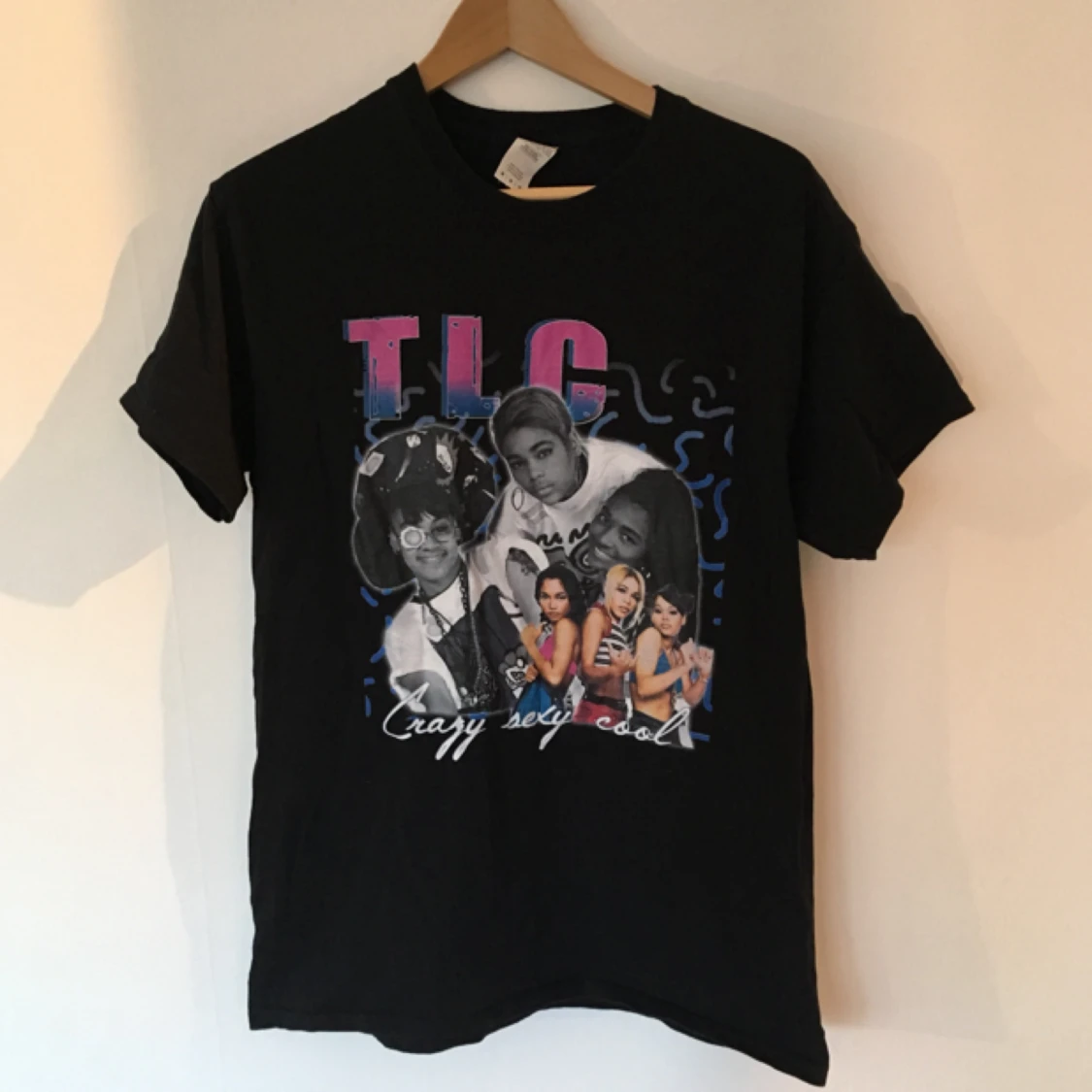 banddtisha i 90-talsstil. sitter lite baggy på ett snyggt sätt. hämtas i sthlm eller skickas om du betalar frakt. säljer massor (kmr mycket nytt i dagarna), mängdrabatt finnes!