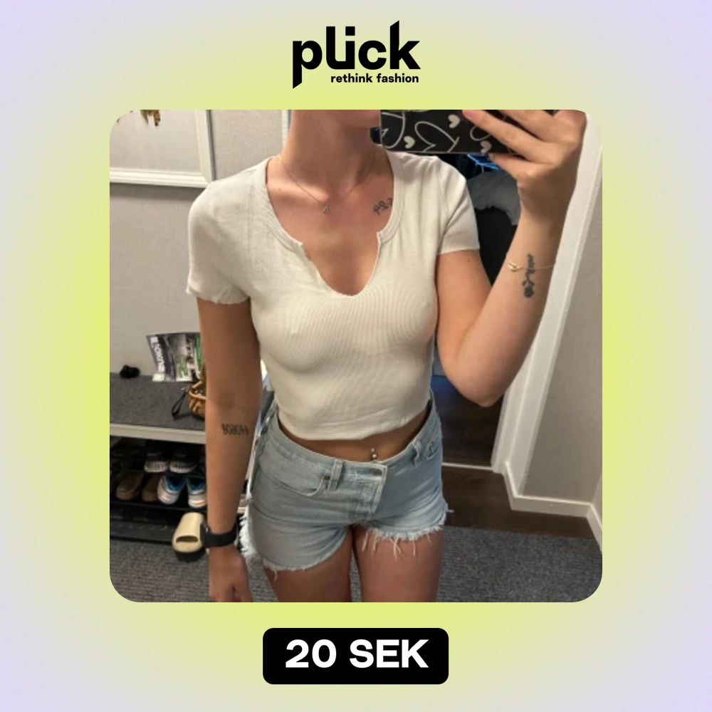 En vit tshirt med en v-ringning vid bröstet, jätte skön i materialet, köpt på vinted