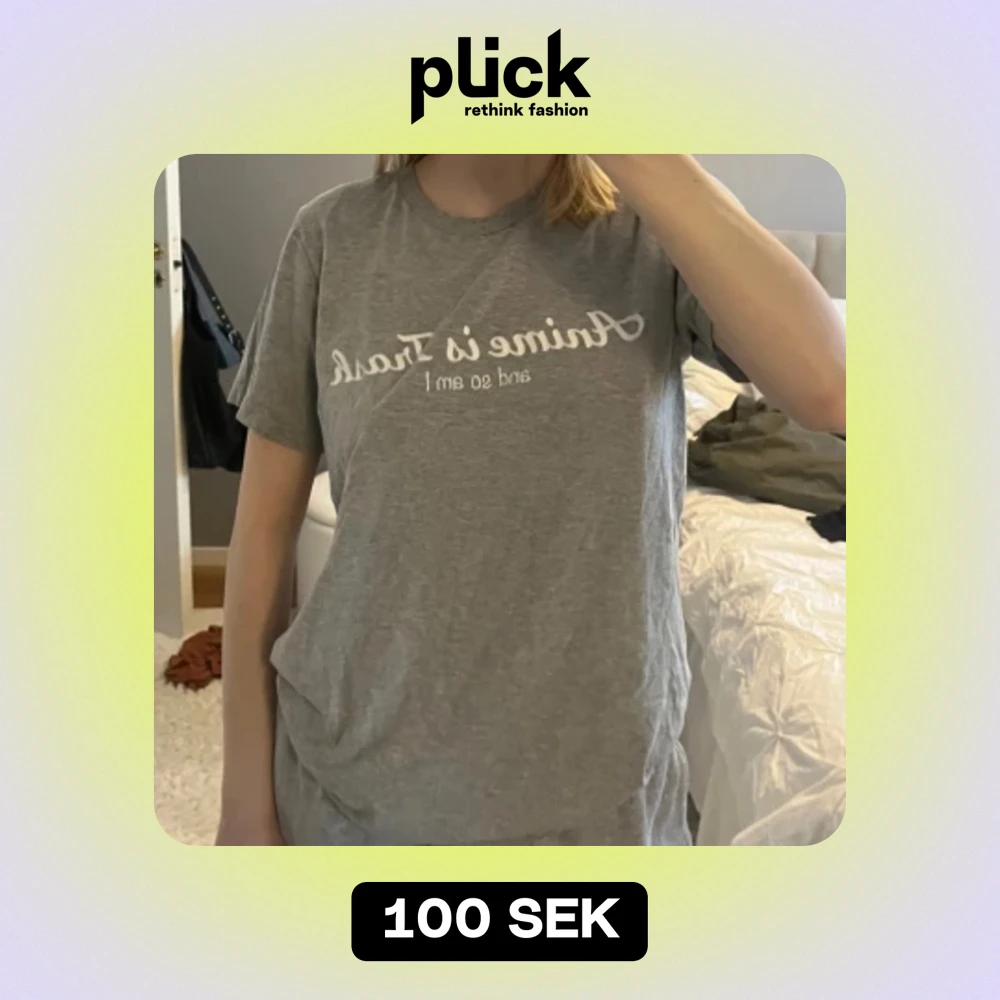 En grå t shirt med texten ”anime is trash and so am i” Väldigt bra skick, knappt använd