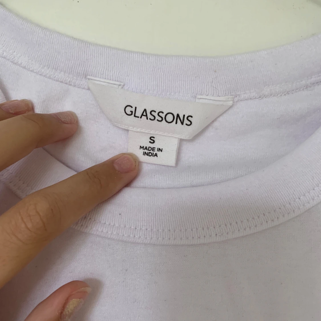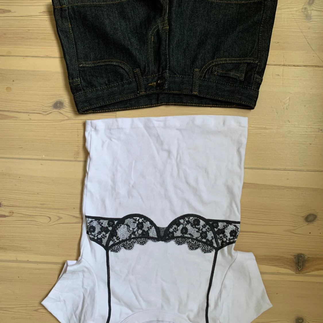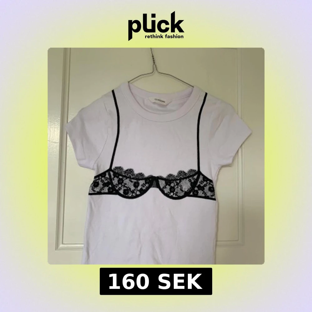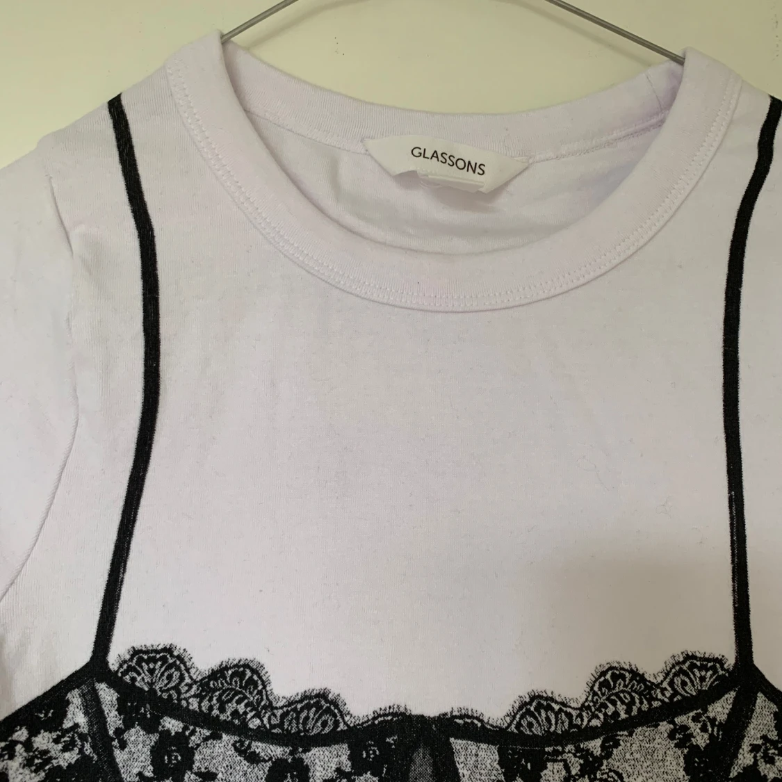 Vit t-shirt med unik svart spets-bh-tryck. T-shirten har rund halsringning och korta ärmar. Köpt i Australien, finns endast på Glassons.