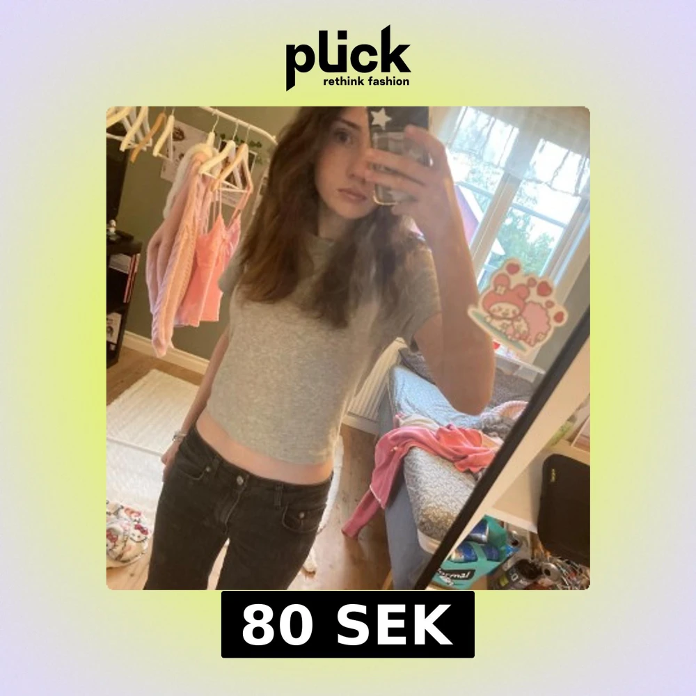 En enkel och stilren grå croppad t-shirt med rund hals. Perfekt att matcha med jeans eller kjol för en avslappnad look.
