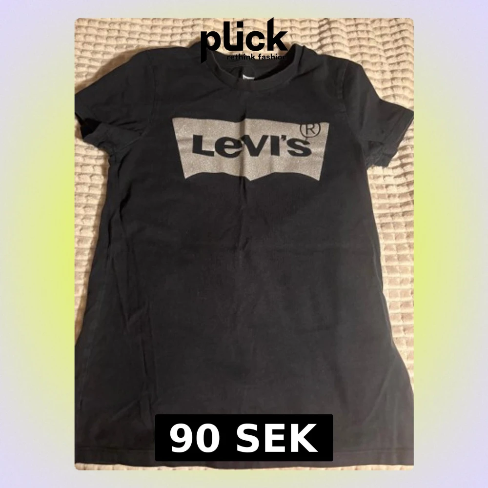 Svart t-shirt från Levi's i storlek XS med klassiskt glittertryck i silver på bröstet. Modellen har rund hals och korta ärmar. Materialet är mjuk bomull och passformen är normal. Perfekt för dig som gillar ikoniska logotoppar med lite extra bling.