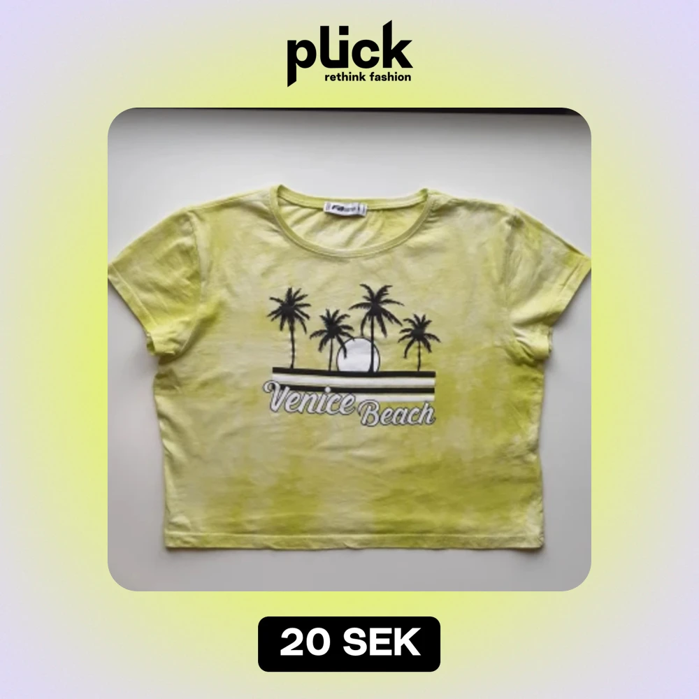Neongul tshirt i tie-dye-stil, med tryck på framsidan. Skriv vid frågor!