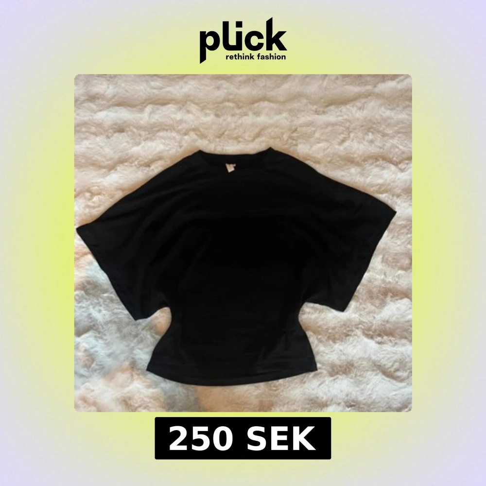 Säljer en svart topp från Gina med loose passform upptill och smalare midja. Toppen har korta, vida ärmar och rund halsringning. Perfekt till jeans eller kjol för en chill och snygg look.