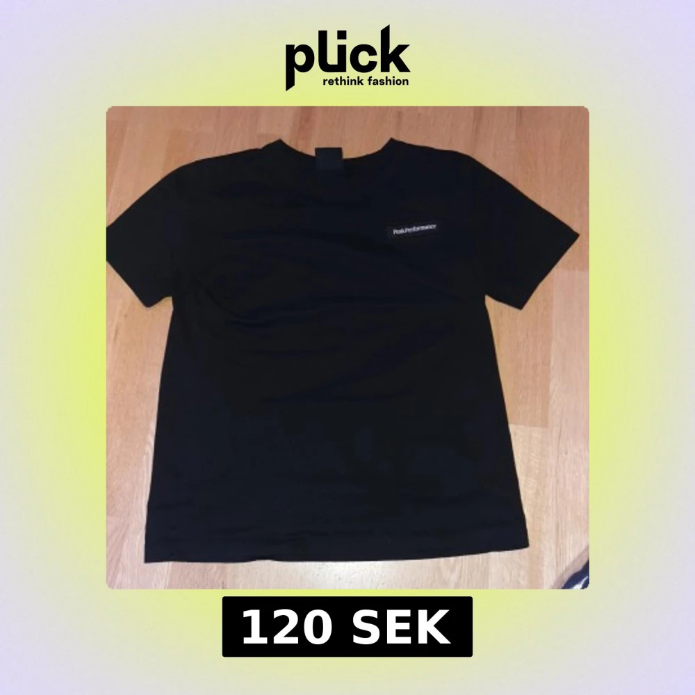 Tja! Snygg svart t-shirt från Peak Performance med korta ärmar och en liten logga på bröstet. Perfekt för en stilren och avslappnad look. Bra skick men använd ganska mycket. Säljer denna för att jag vuxit ur den.