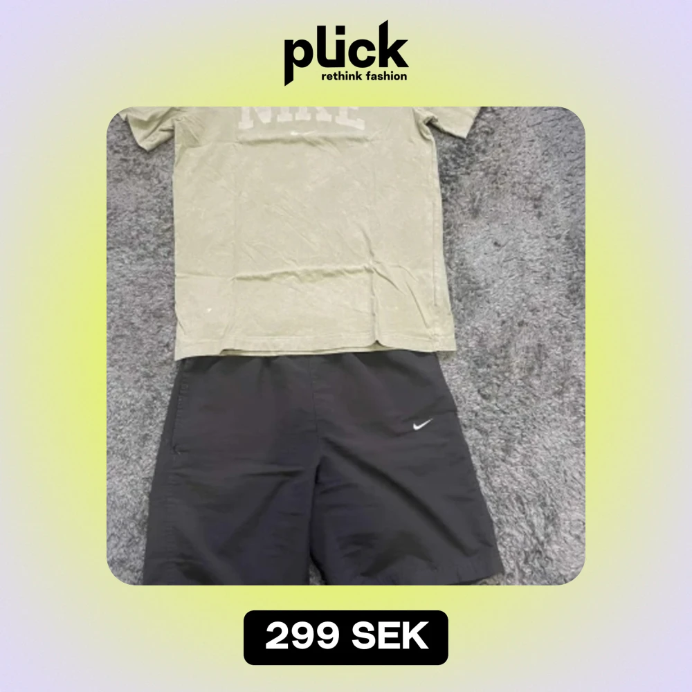 Fräsch samt snygg Nike bundle till varmare väder! För 299 kr får du en Nike t-shirt som är oversized och går perfekt ihop med Nike shortsen! Både t-shirten och shortsen passar dig som bär S-M! Vid minsta fundering hör av er✔️