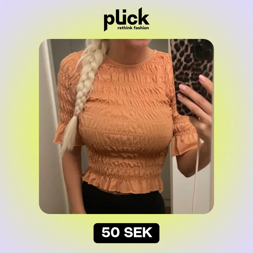 Jätte fin orange brun topp med lite struktur och lite volanger i storlek xs, aldrig använd, köpt på Gina tricot