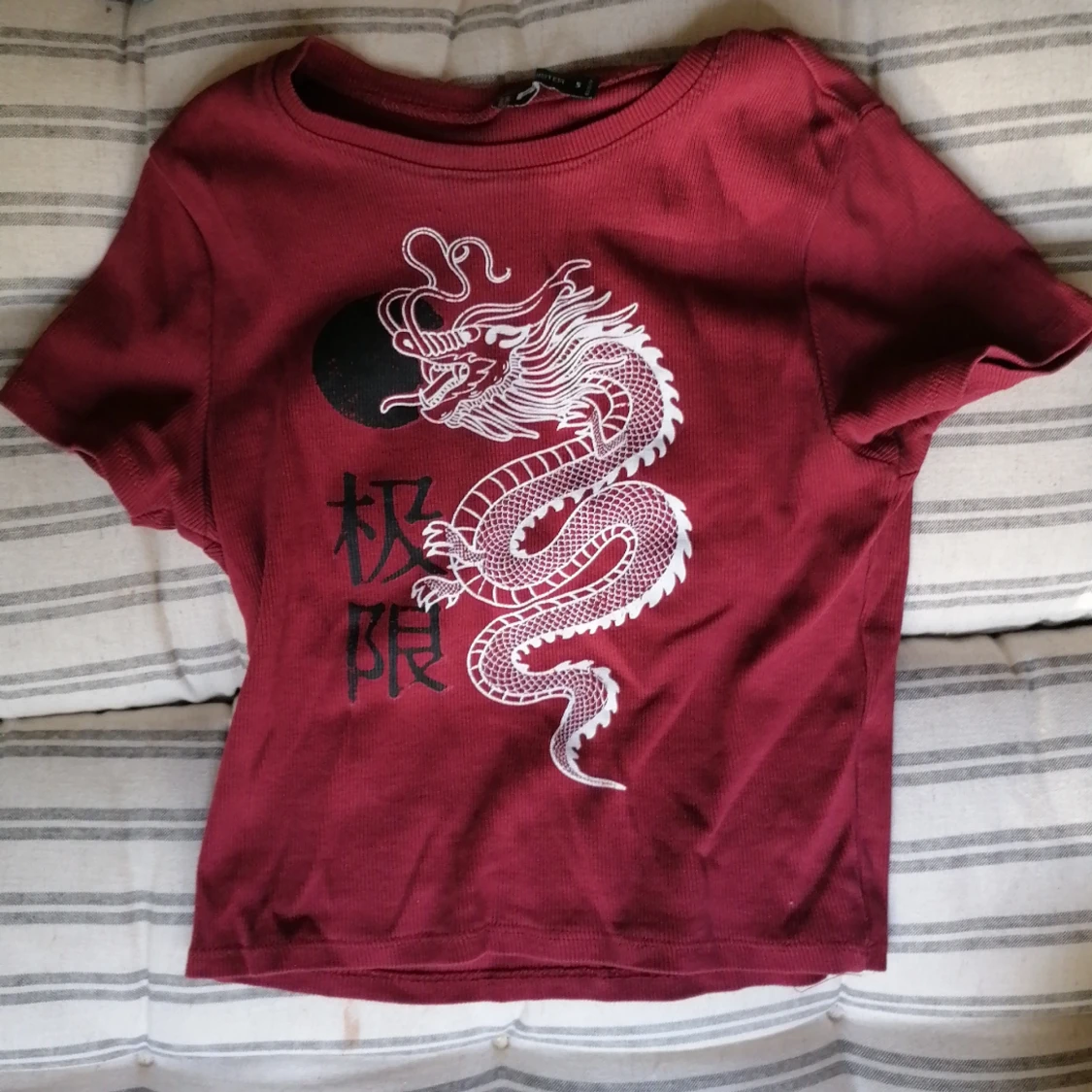 Vinröd croptop i ribbat tyg som inte kommer till användning. Passar både S och xs och har inga tecken på att den använts Priset kan diskuteras