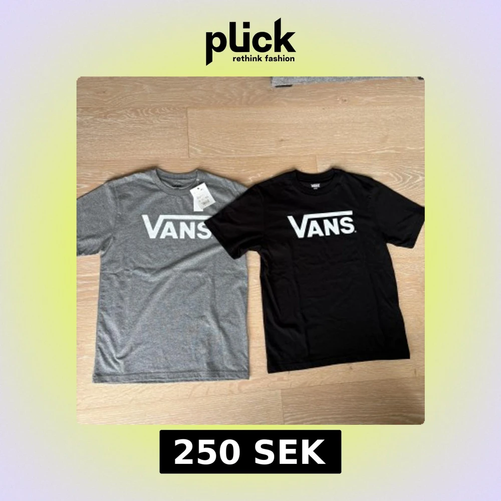 Två klassiska Vans t-shirts i storlek JR Large, en i svart och en i grått. Helt oanvända en med prislapp kvar och en utan. Båda har den ikoniska Vans-loggan tryckt i vitt framtill med en rund hals och korta ärmar. Pris för båda två, säljs endast ihop. Motagare står för frakt.