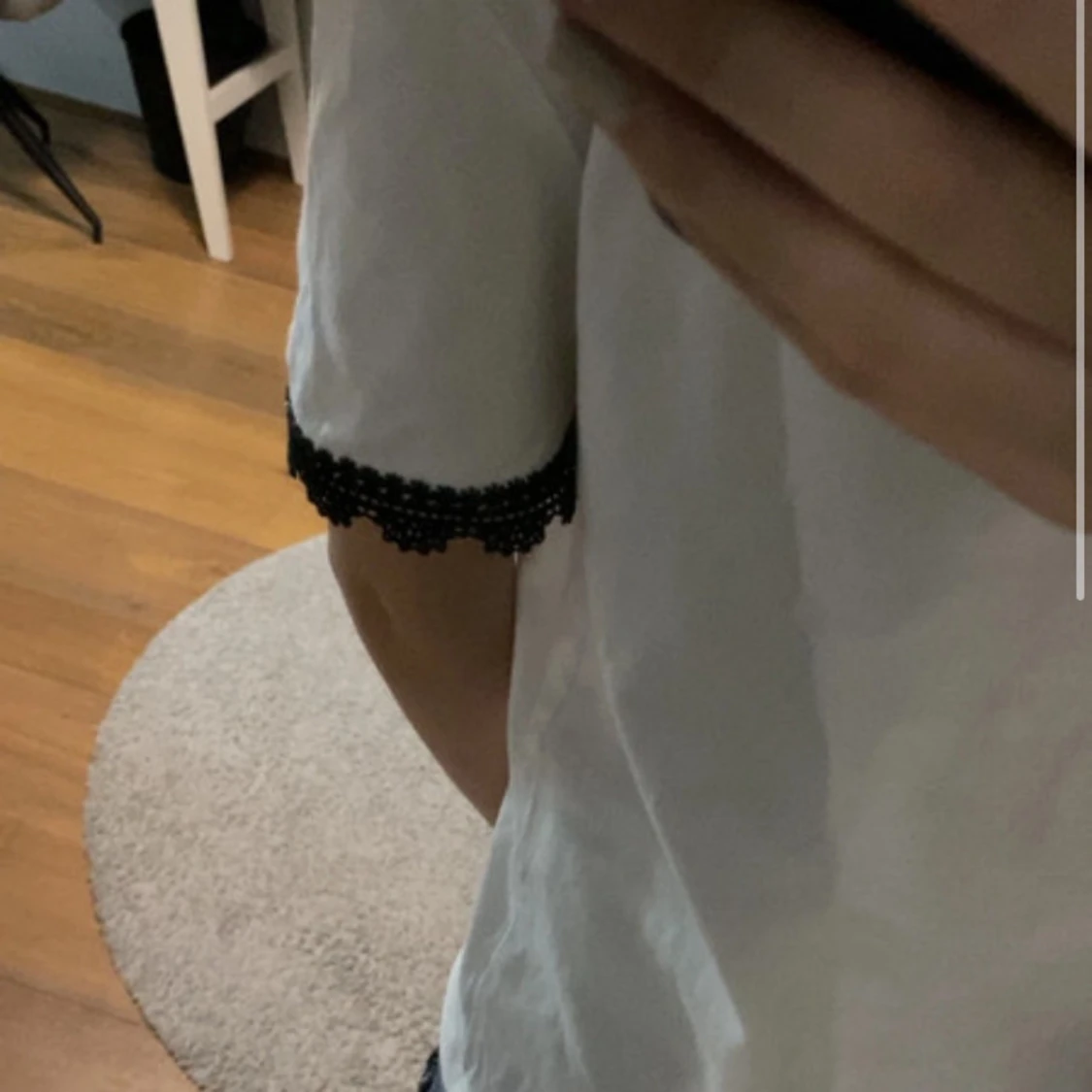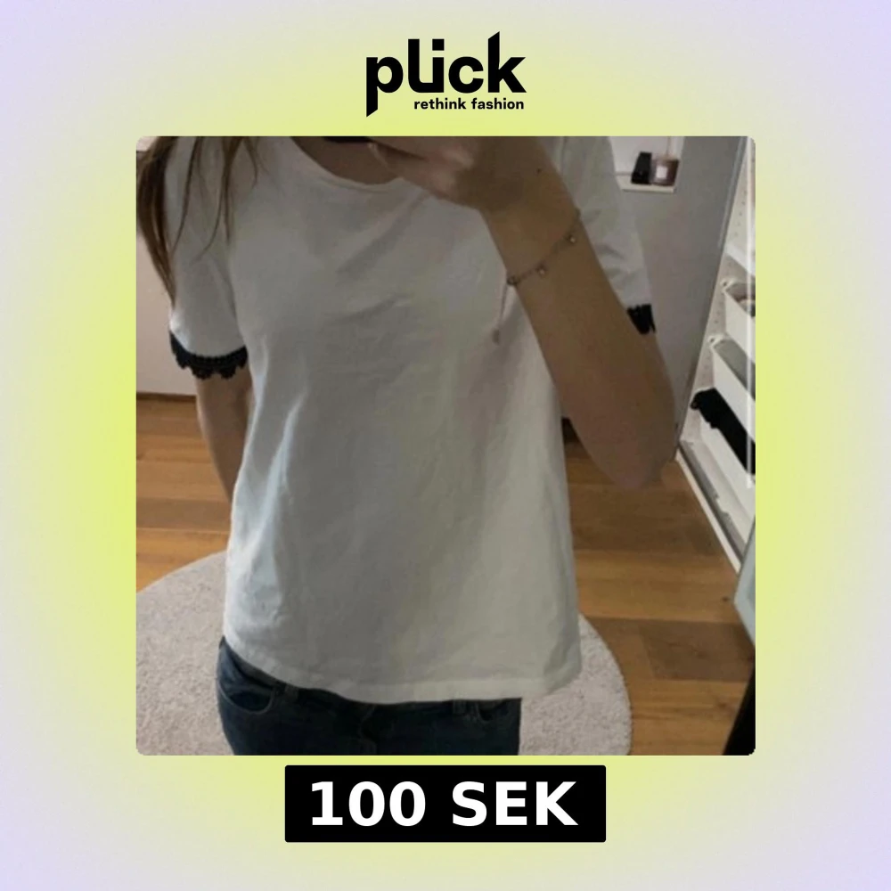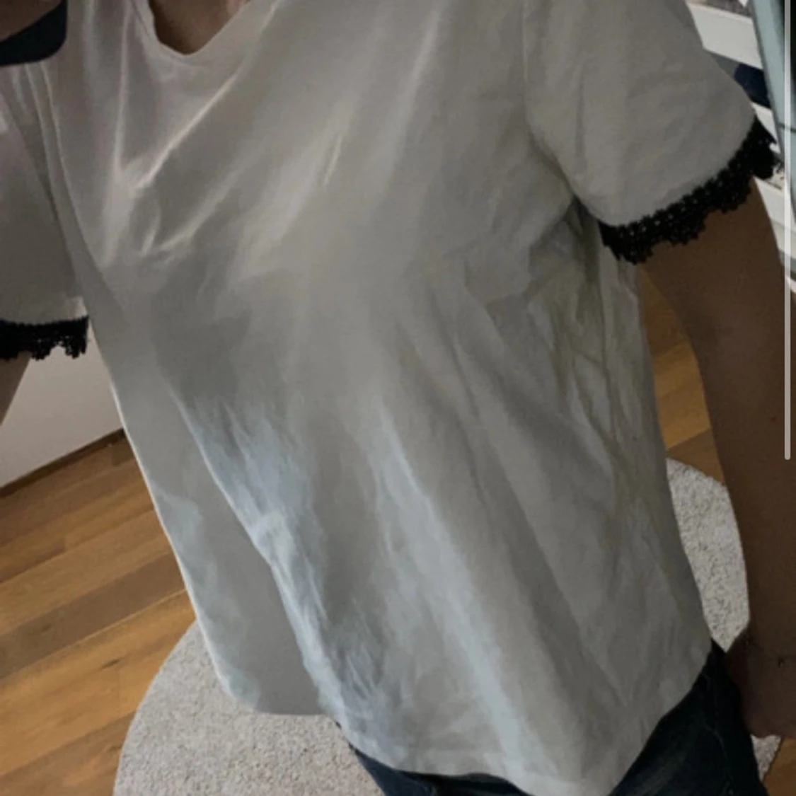 jag säljer en t-shirt med korta ärmar och svarta spetsdetaljer vid slutet av ärmarna. har inte kommit till andvädning, den är väldigt ny 💕