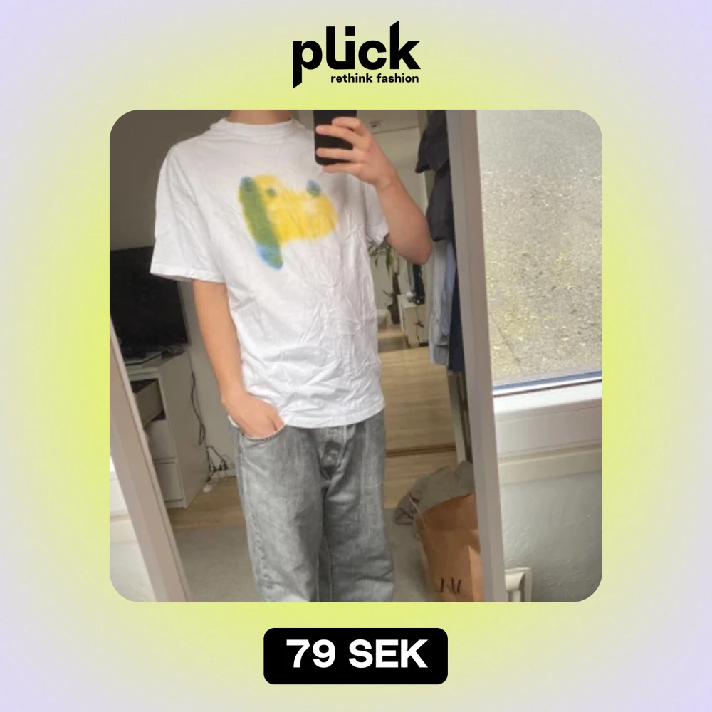Vit Weekday T-shirt med hundtryck. Storlek S passar S/M.