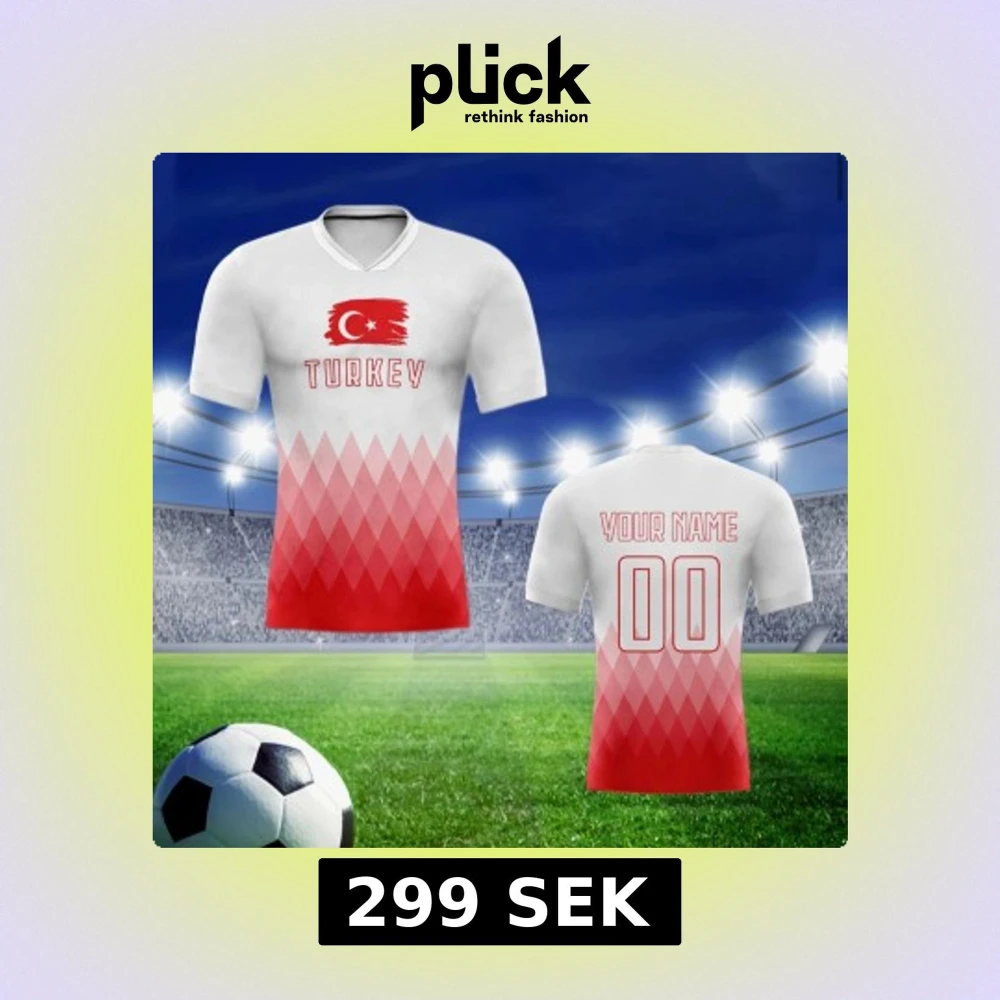 NI VÄLJER STORLEK! Snygg fotbollströja inspirerad av Turkiets landslag. Tröjan är vit upptill och övergår i rött med diamantmönster. Turkiets flagga och texten 'TURKEY' på bröstet. Kortärmad och perfekt för match eller träning.