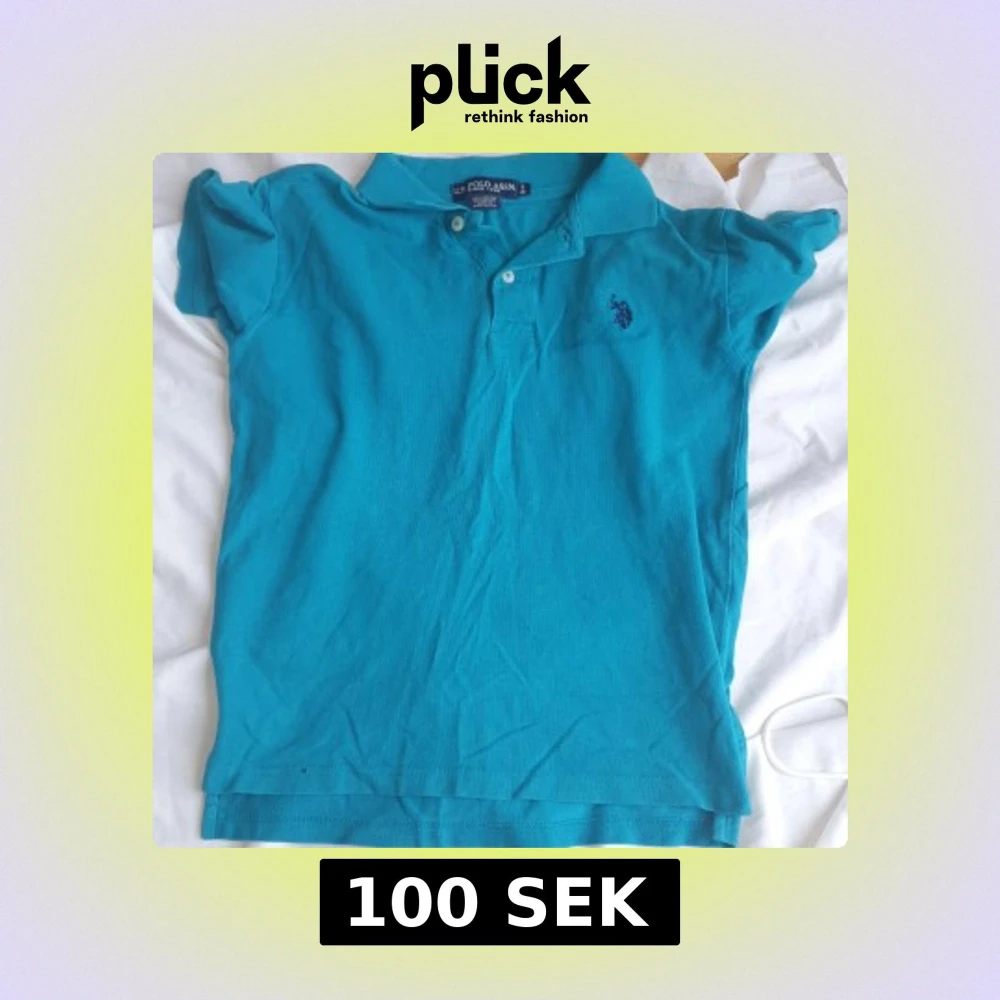Säljer en turkos pikétröja från U.S. Polo Assn. i storlek S. Tröjan har klassisk krage, korta ärmar och knäppning framtill. Broderad logga på bröstet. Tillverkad i 100% bomull för en skön känsla.