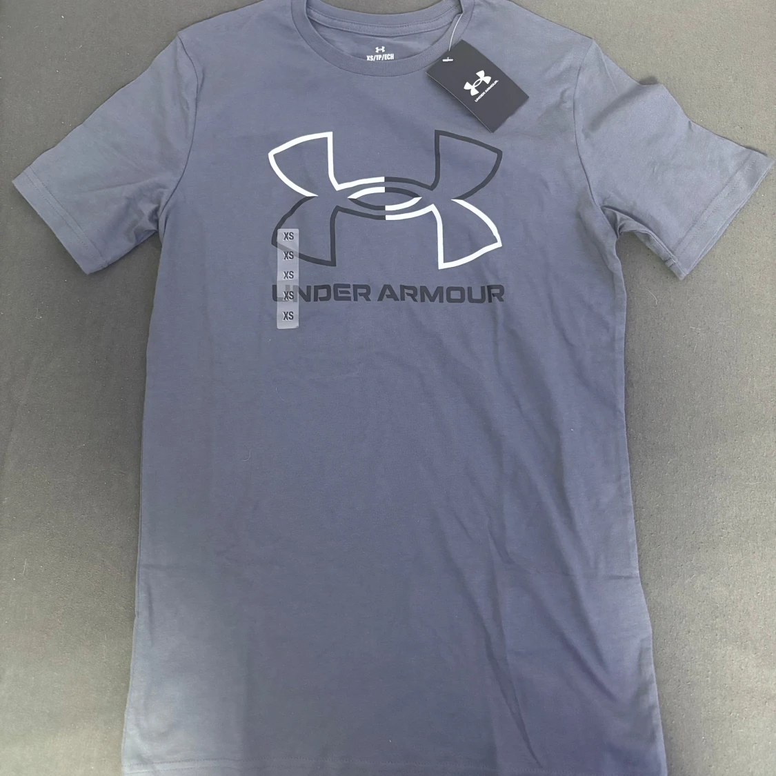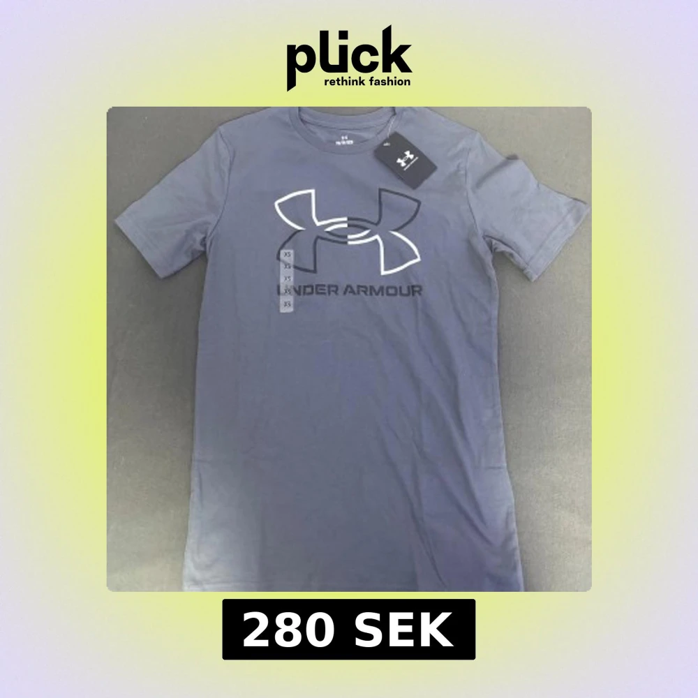 Snygg mörkblå oanvänd t-shirt från Under Armour med deras ikoniska logga tryckt på bröstet. Perfekt för träning eller en avslappnad dag. Tillverkad i ett mjukt och bekvämt material. Köpt för 450