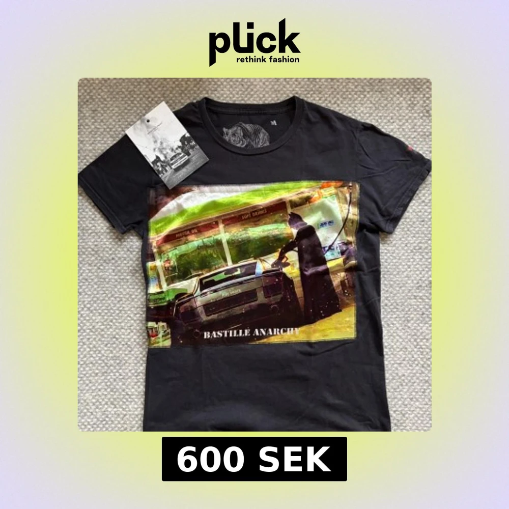 INTRESSEKOLL Unik svart t-shirt från Bastille med en bild och texten 'Bastille Anarchy'. Storlek M, men väldigt kort i storleken så rekommenderar den till dig som bär S |Nypris:1099kr|