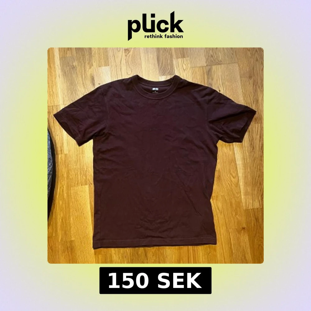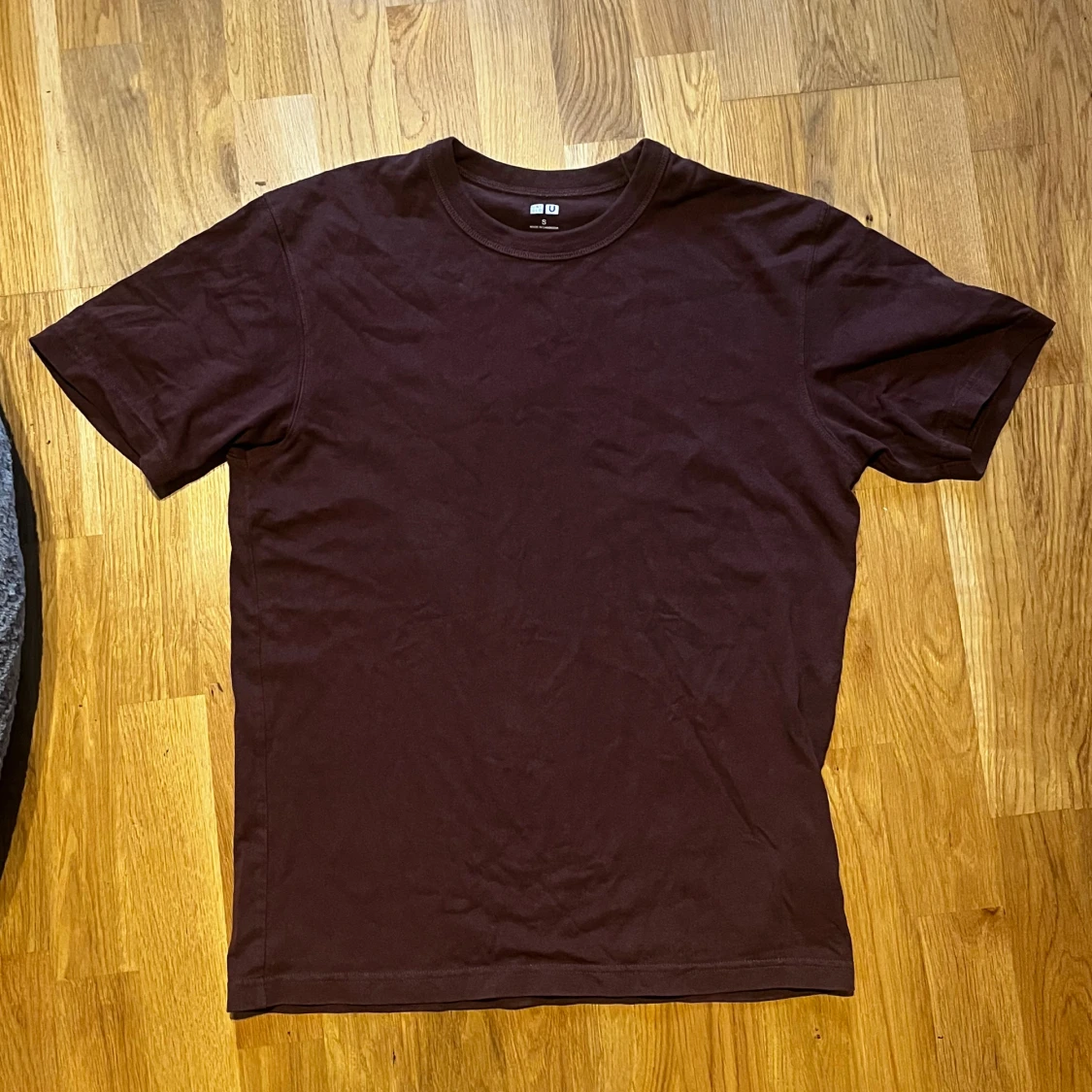 En basic mörkbrun t-shirt från Uniqlo i klassisk modell. T-shirten har rund halsringning och korta ärmar, tillverkad i mjuk bomull. Perfekt för en clean och enkel stil.
