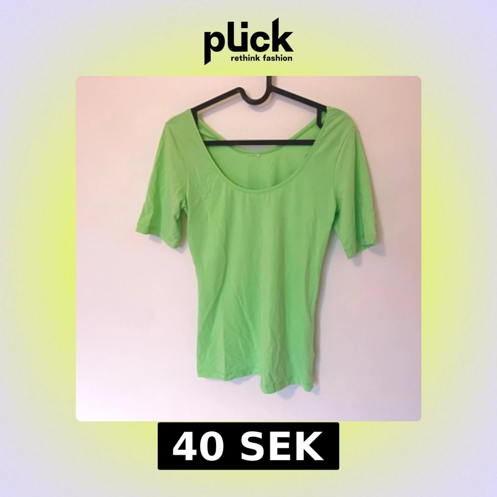 Snygg ljusgrön tröja med en djup U-ringning. Den sitterfigurnära men är inte insydd. Bra kvalitet utan tydliga defekter. Mått finns om så önskas, lapp var avklipp men den passar S & M.