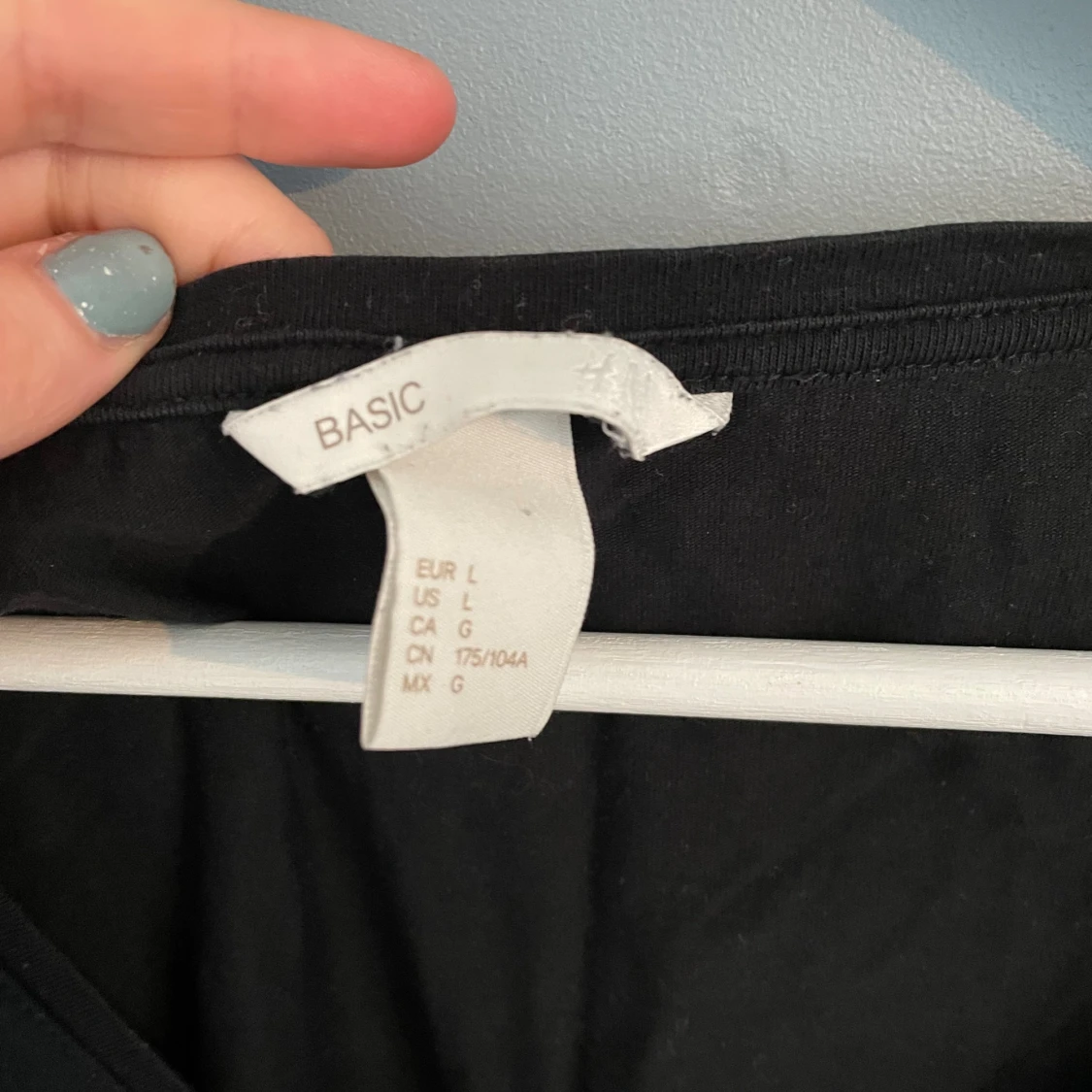 Urringnad svart t shirt, strl L men skulle säga att den är mindre så S/M men beror på vilken passform man vill ha, bra skick✨✨