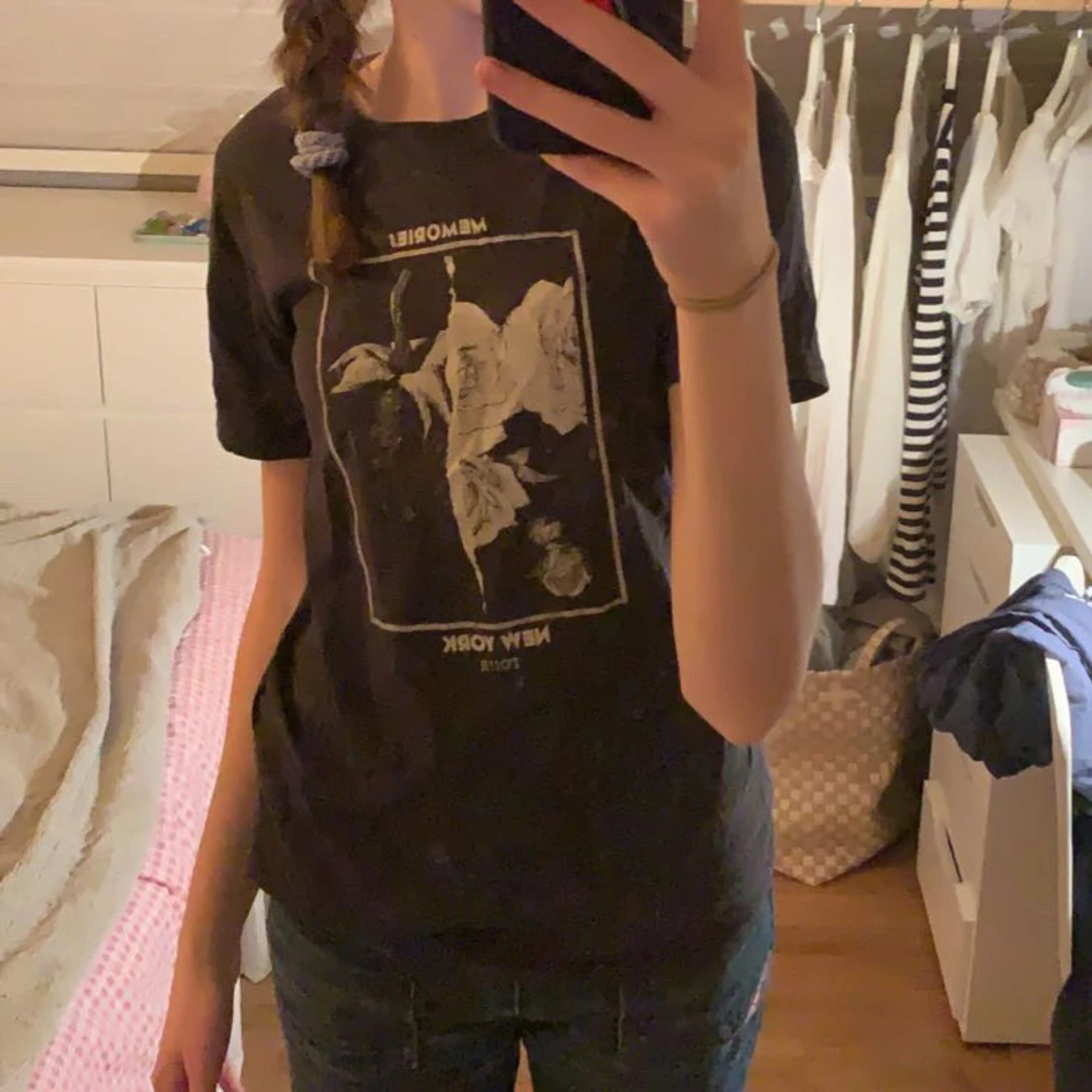 Grå t-shirt från ginatricot i storlek XS. Har ett tryck med rosor. Passar bra till nästan allt! 50kr + frakt ❤️🔥