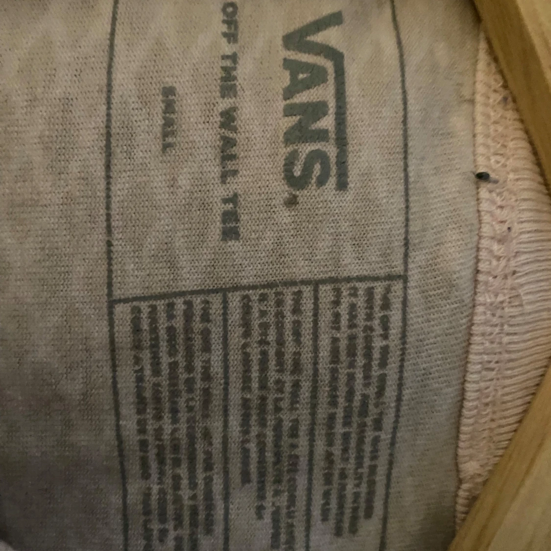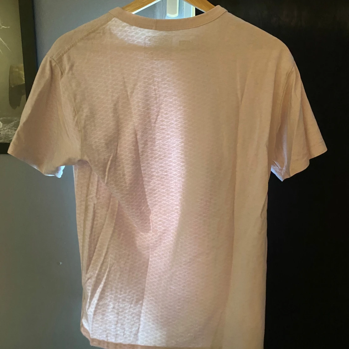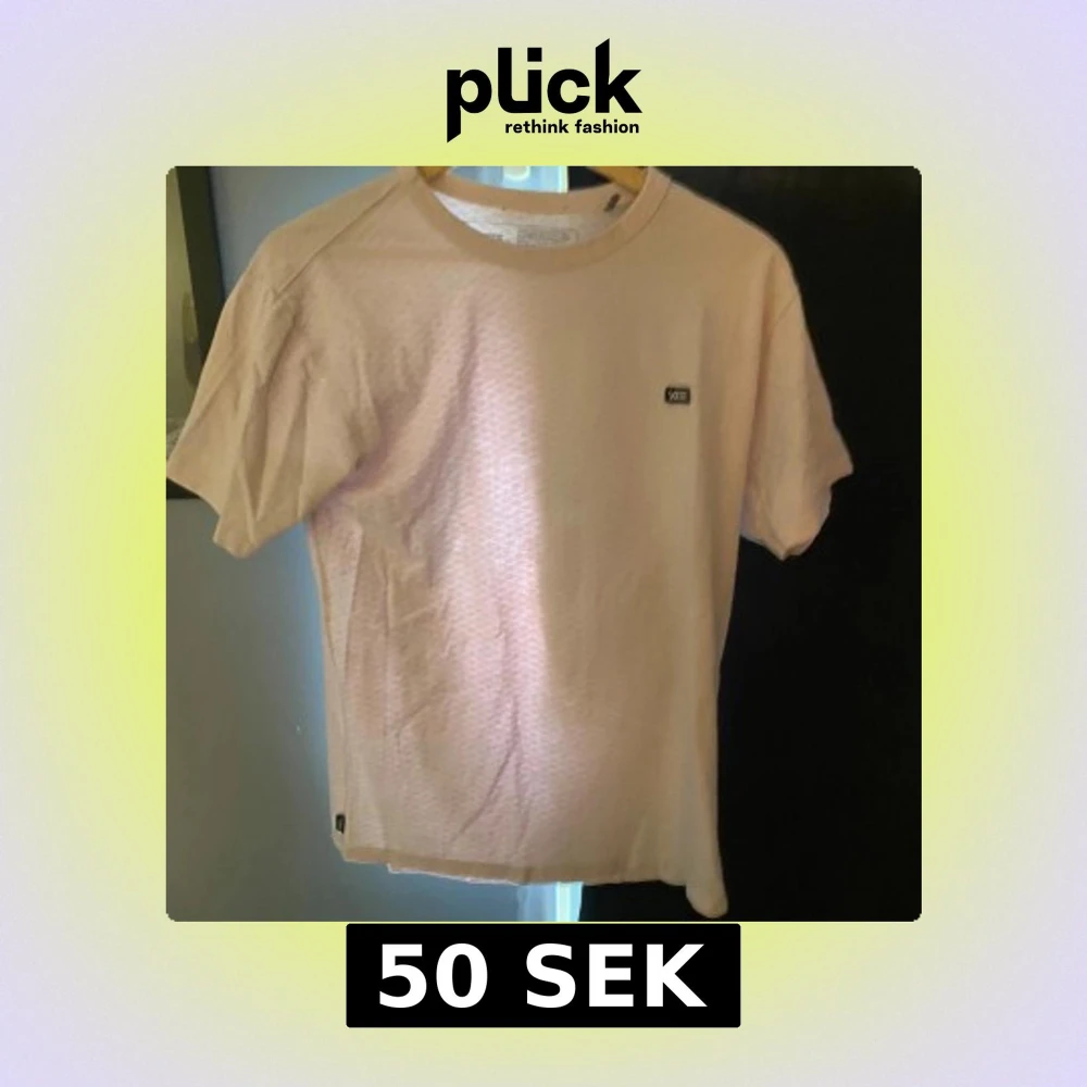 Säljer en ljusrosa t-shirt från Vans med diskret mönster och klassisk Vans-logga på bröstet. T-shirten är i mjuk bomull och har en avslappnad passform med korta ärmar. Perfekt för en chill och stilren look.