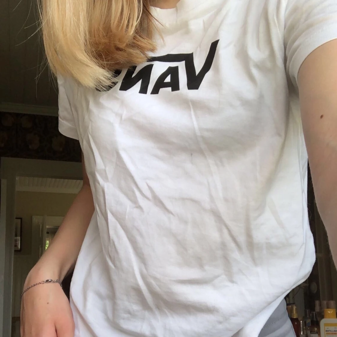 En vit T-shirt ifrån vans i strl xs ❤️ inget fel på den men säljer den för att den inte är min stil ❤️ köpt på ridestore