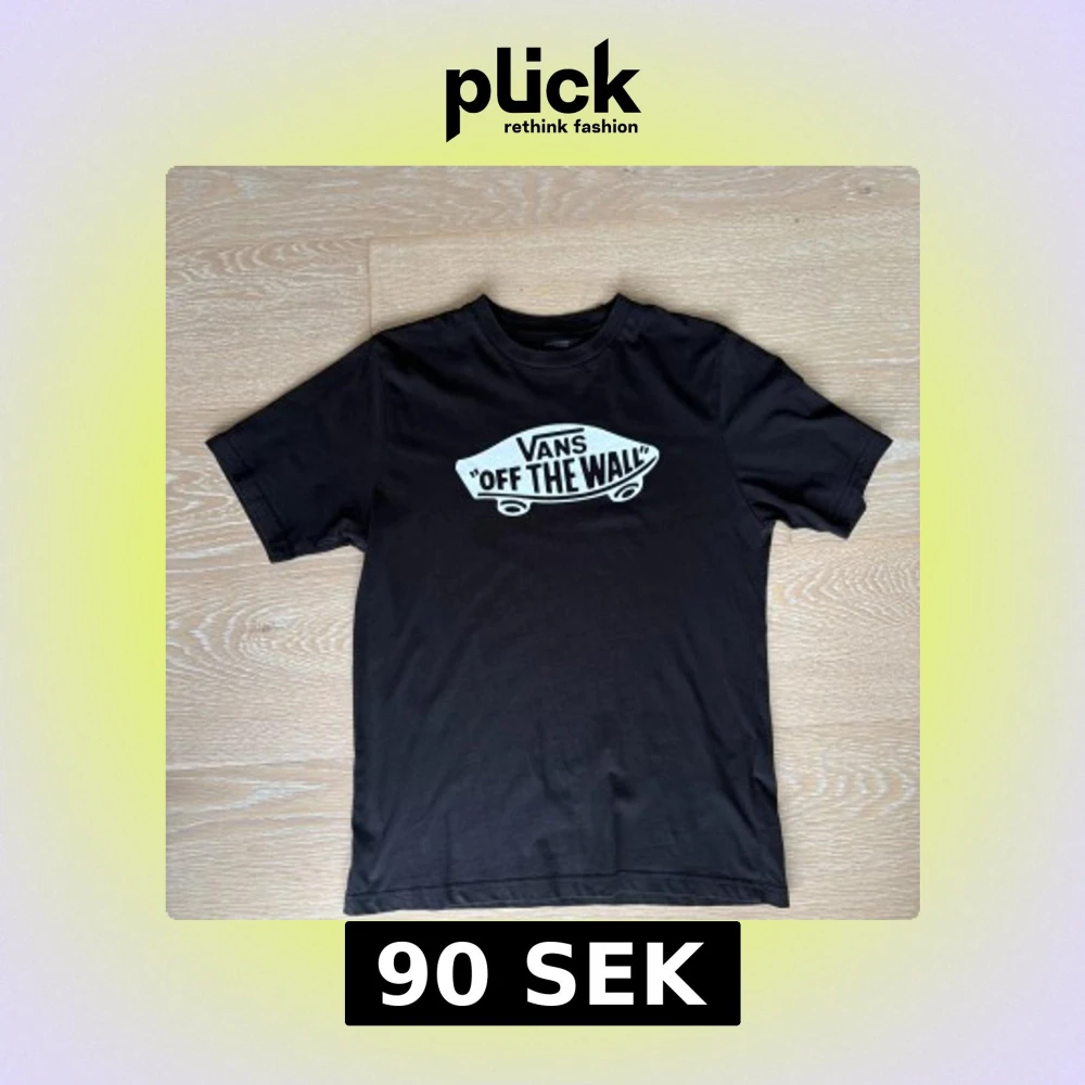 Svart t-shirt från Vans med klassiskt 'Off The Wall'-tryck i vitt på bröstet. Storlek JR L (12-14) Modellen har rund hals och korta ärmar. Motagare står för frakt