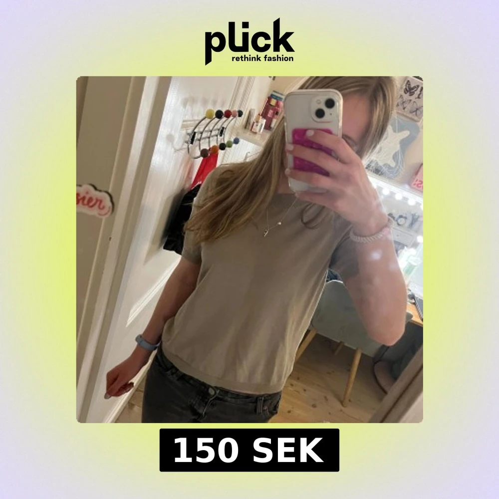 En beige kortärmad stickad tröja från Lindex. Fint skick och skönt material 💘.