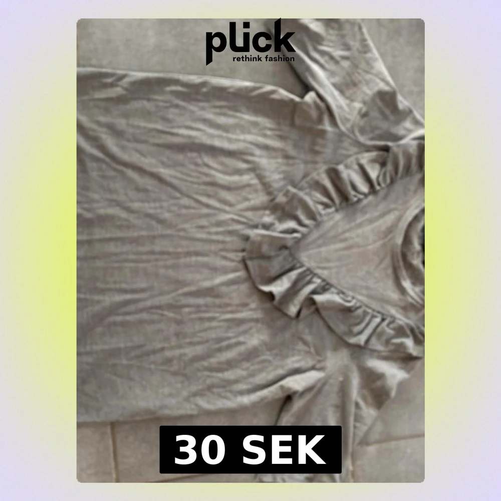 Snygg grå t-shirt med volangdetalj framtill. T-shirten är köpt på loppis men inte kommit till användning utav mig. Fungerar perfekt till vardags men även till lite mer uppklädda tillfällen.