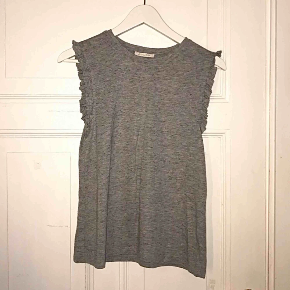 Armlös t-shirt med volanger från VERO MODA. Fint skick, knappt använd. Frakt ingår! ☀️🍀🍃