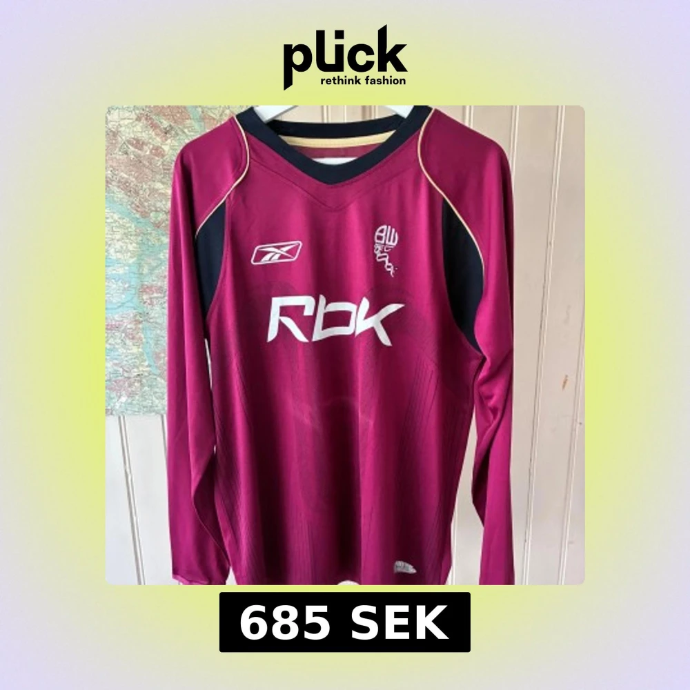 Säljer en vinröd långärmad fotbollströja från Bolton Wanderers, tillverkad av Reebok. Tröjan har svarta och beige detaljer, vit RBK-logga och klubbmärke på bröstet. Tillverkad i lätt och ventilerande polyester med Play Dry-teknologi. Perfekt för dig som gillar retro och engelsk fotboll. Knappt använd. #boltonwanderers #bolton #premierleague #anelka #nolan #reebok #retro #vintage