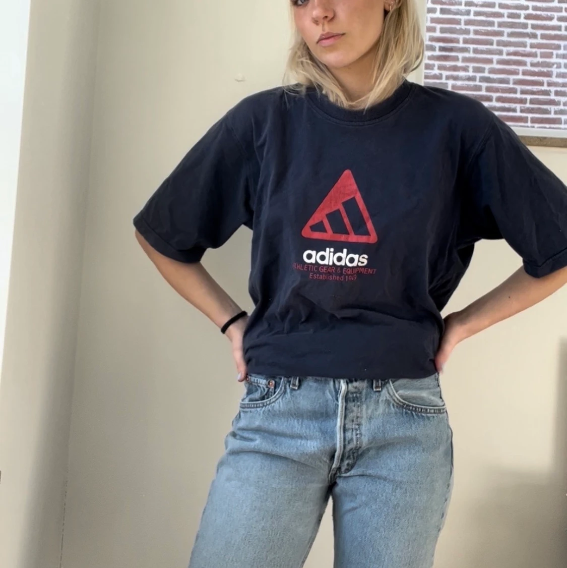Mörkblå vintage adidas T-shirt med rött tryck 🥰