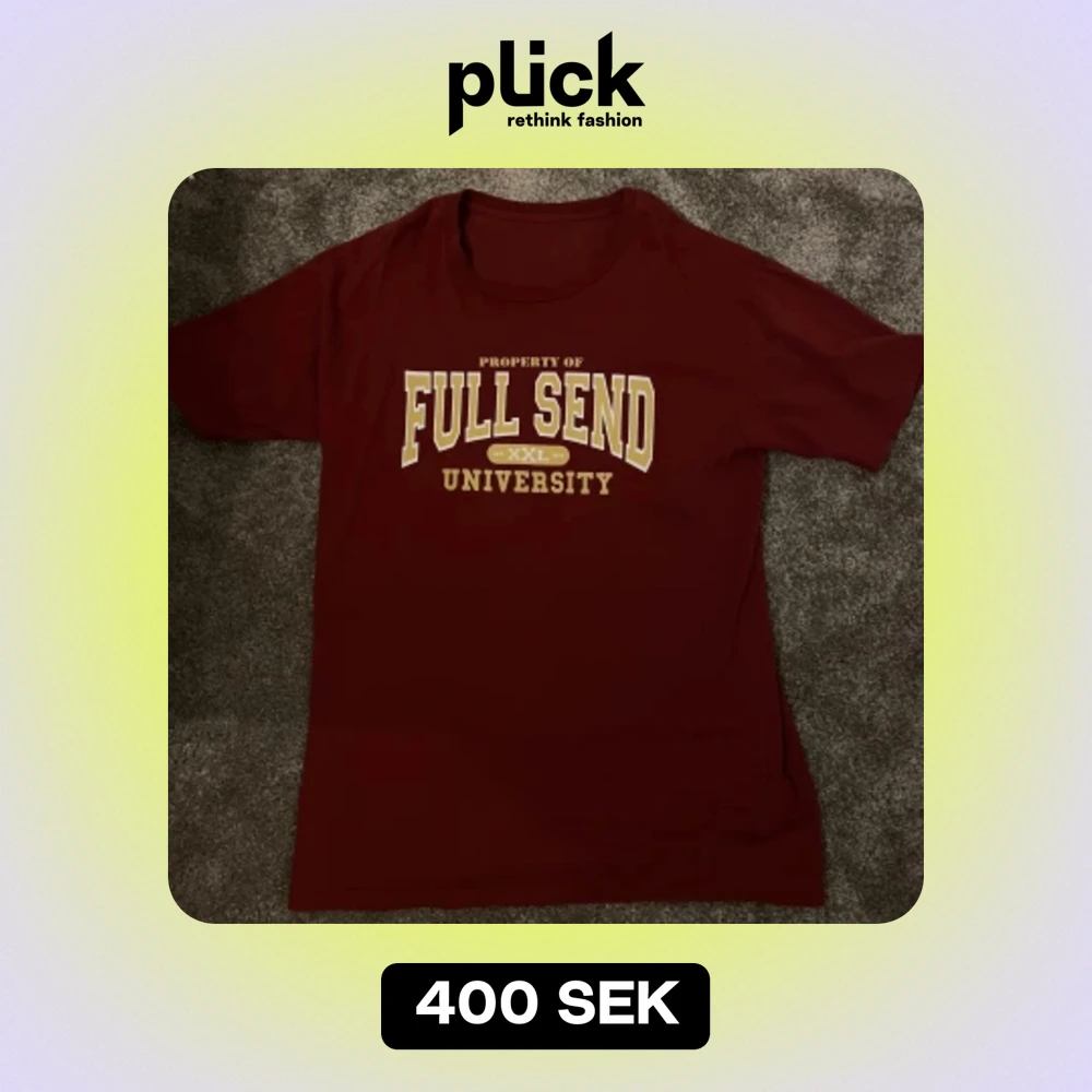 Som sagt en vinröd Full Send tröja från “university” droppet. Endast använd 1 gång så i ett väldigt gott skick. Den är väldigt stor i storleken, skulle påstå att den sitter som en oversized Large eller som en XL nästan.