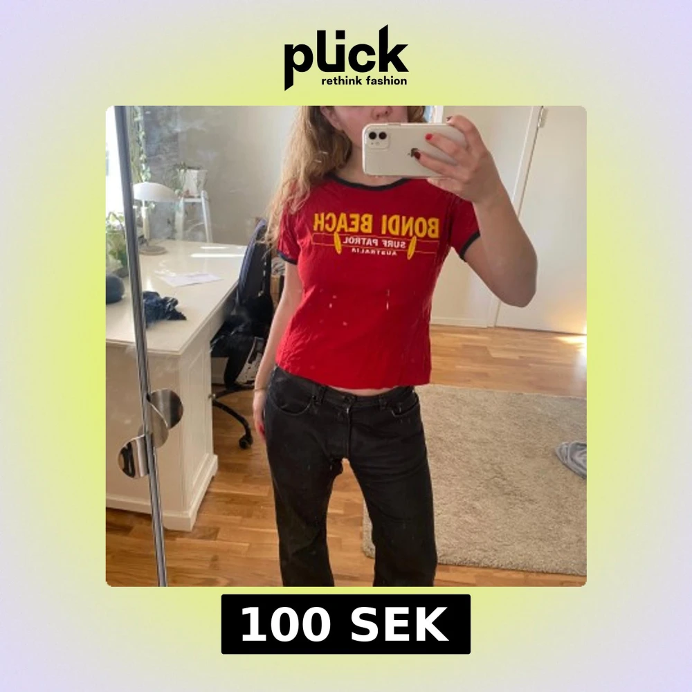 Jätte smickrande röd Bondi Beach T-shirt. Toppen är designad och printad i Australien. Storleken är XL men skulle säga att den passar S/M.