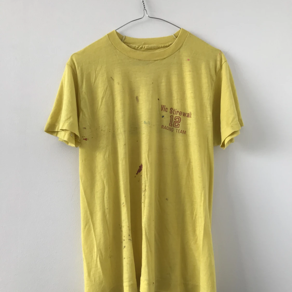 Säljer en gul vintage tee med tryck. Använd men har fortfarande liv kvar i sig, från 70-talet.