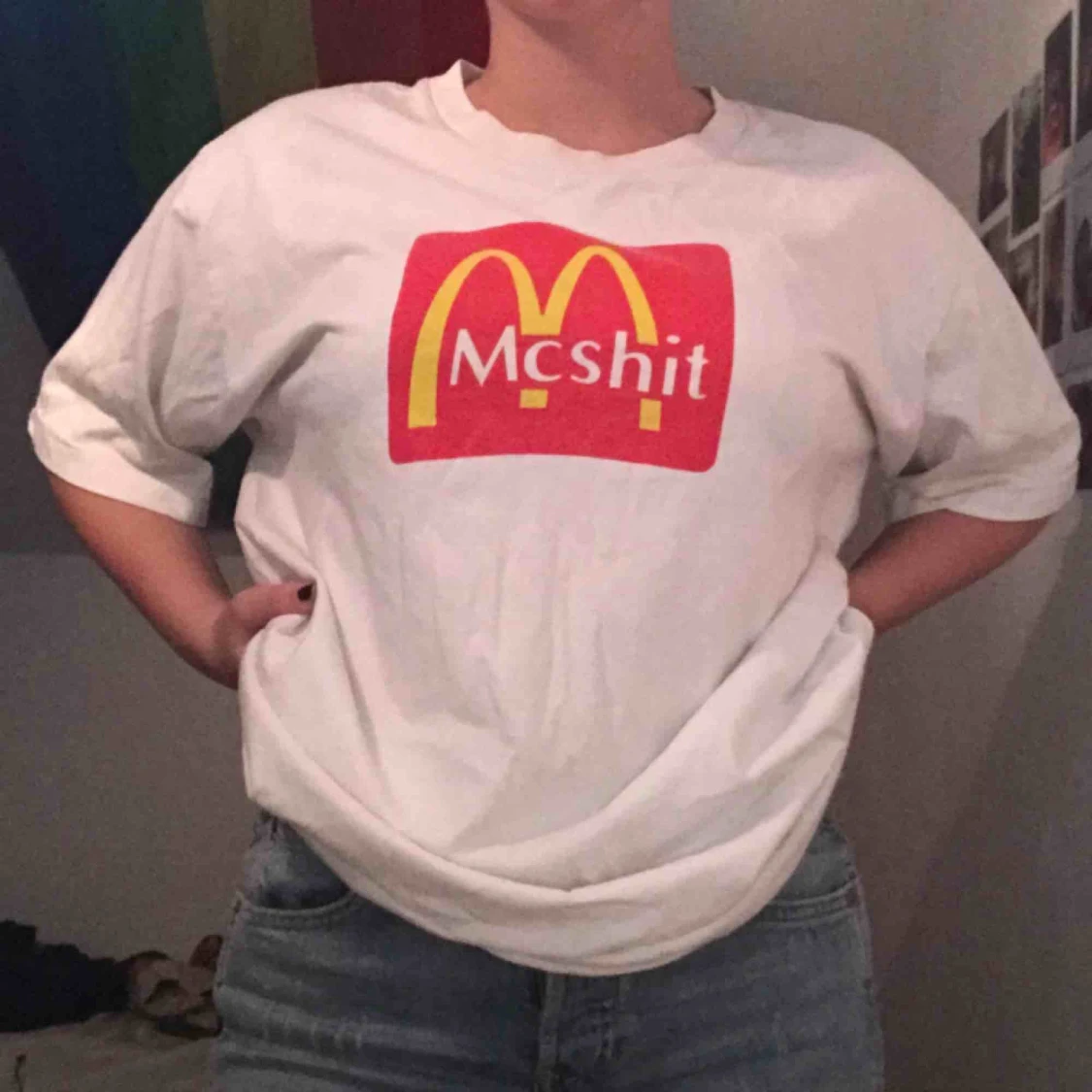 Oversized Mcshit röd gul & vit t-shirt (priset kan ändras)