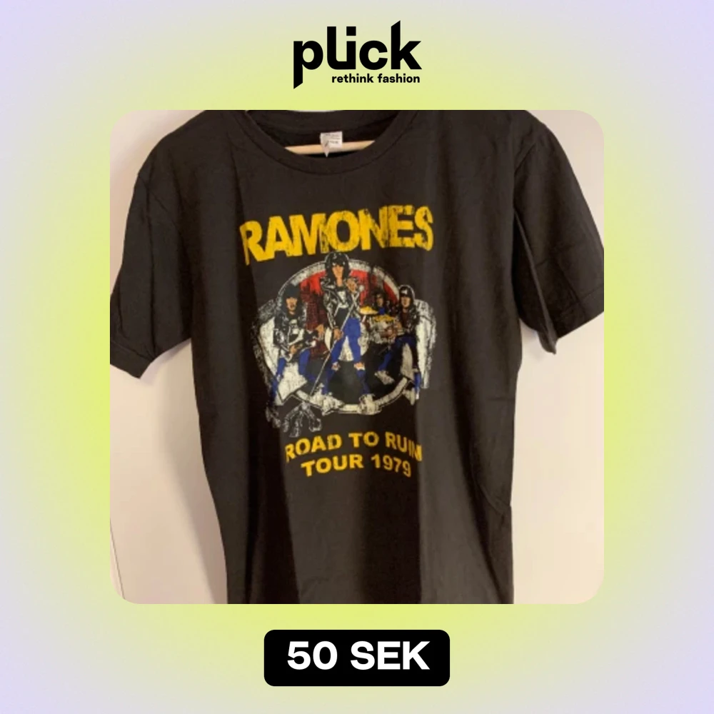 Ramones T-shirt i Mycket fint skick och modellen ska vara ”vintage look”, står storlek L, men är mer som en M, 64cm från axeln och ner och 47cm mellan armhålorna.