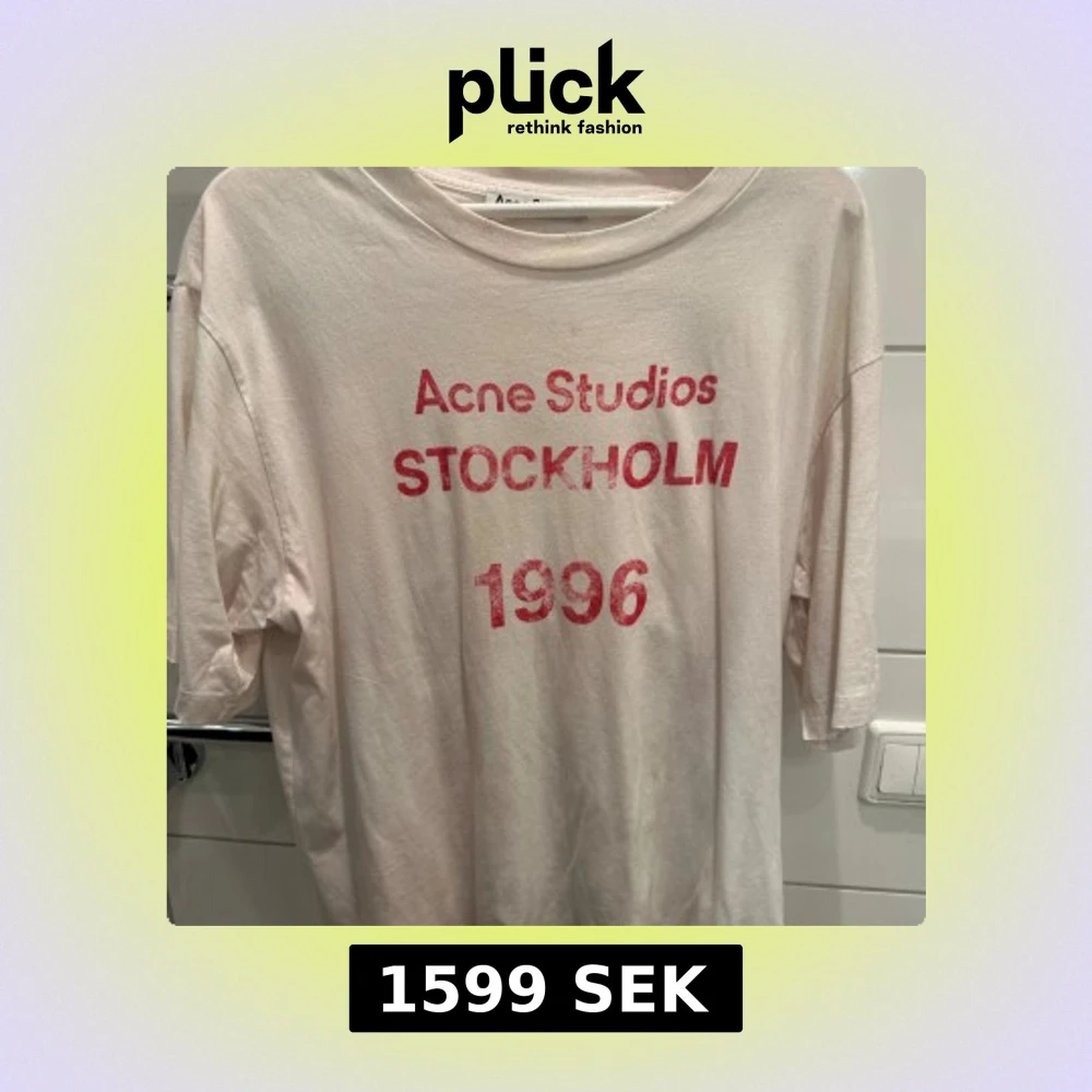 Vit t-shirt från Acne Studios med rött tryck på bröstet där det står 'Acne Studios STOCKHOLM 1996'. Klassisk passform med rund hals och korta ärmar. Mjuk och skön i bomull, perfekt för en avslappnad stil.