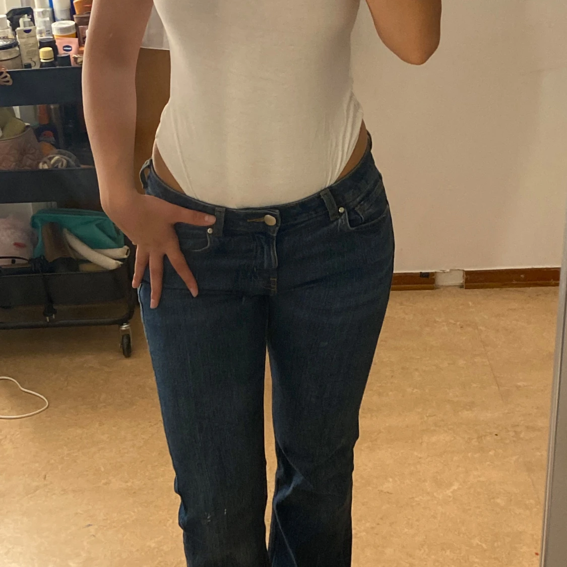 Super söt vit body som tyvärr är för liten på mig. Skulle passa normalt om man är 160/165 skulle jag gissa då jag själv är 170. Passar till allt