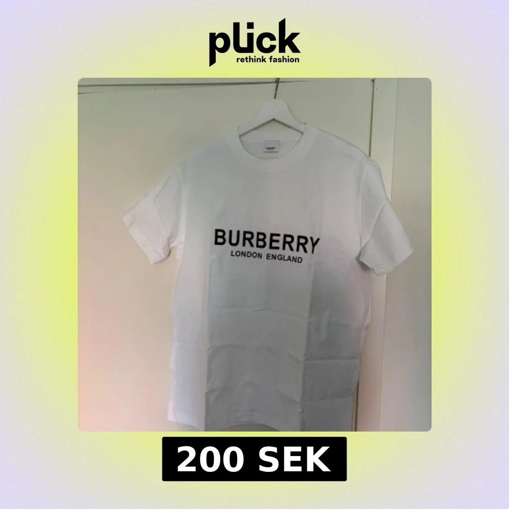 Vit t-shirt från Burberry med klassiskt svart logotryck 'BURBERRY LONDON ENGLAND' på bröstet.