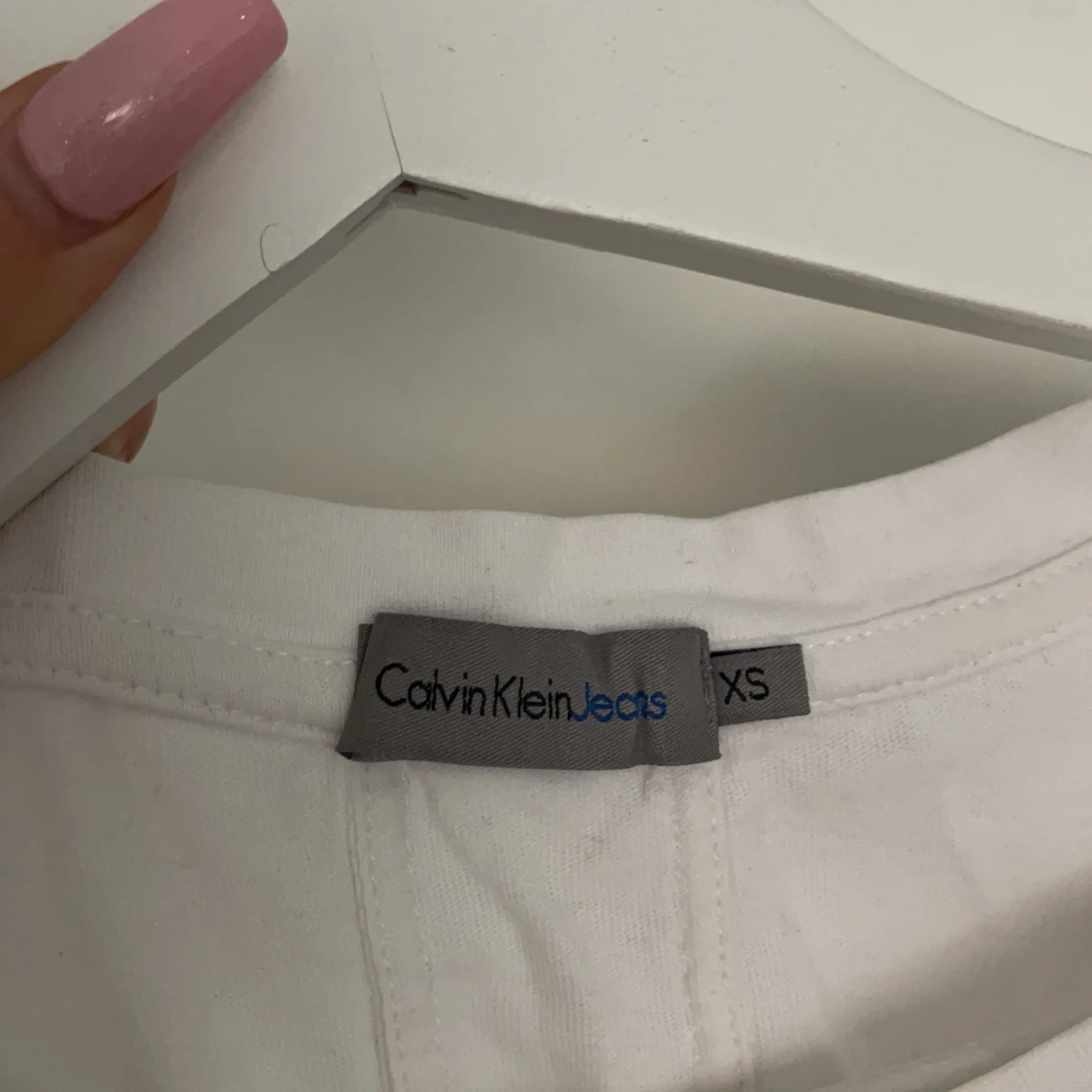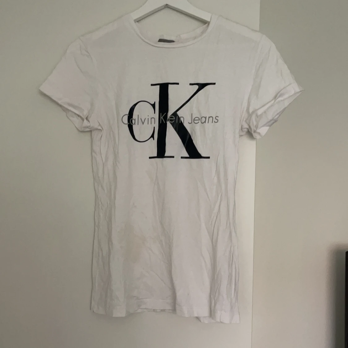 Calvin clein tshirt i storlek xs, använd fåtal gånger, har en fläck på sig som jag faktist inte vet vad det är men är säker på att det går att tvätta bort, fint skick i övrigt