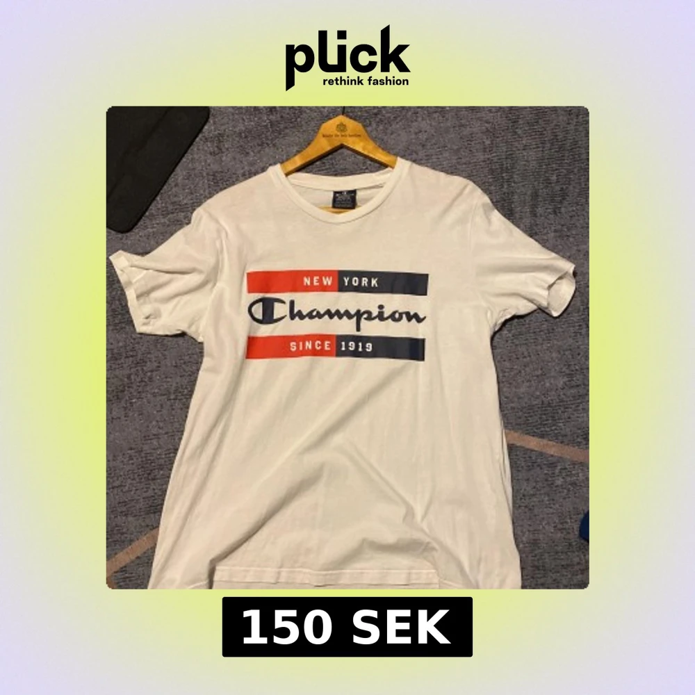 Snygg vit t-shirt från Champion med stort tryck på bröstet i rött, blått och vitt. Klassisk rund hals och korta ärmar. Perfekt för dig som gillar streetwear och vill ha en enkel men stilren look. Tillverkad i mjuk bomull för skön känsla hela dagen.