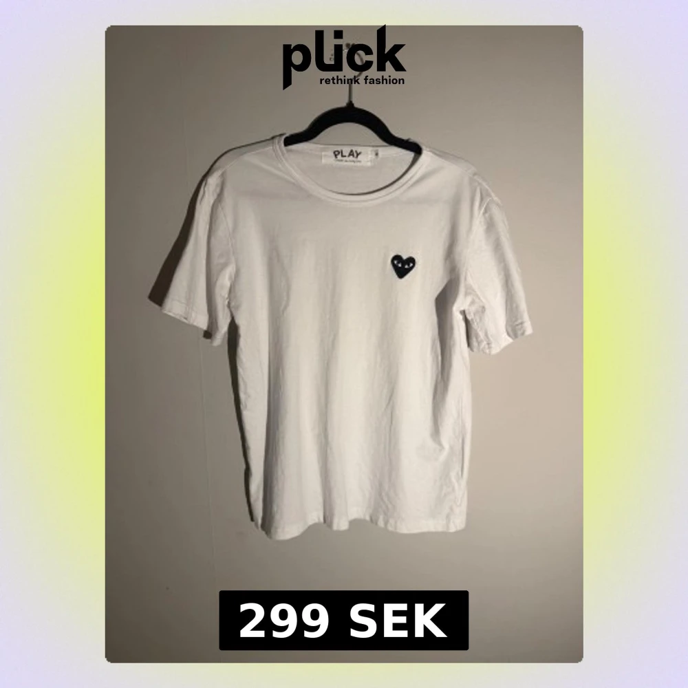 Vit t-shirt från Comme des Garçons Play med klassisk svart hjärtlogga broderad på bröstet. T-shirten har rund hals, korta ärmar och är gjord i mjuk bomull. Enkel och stilren design som passar perfekt till jeans eller shorts.